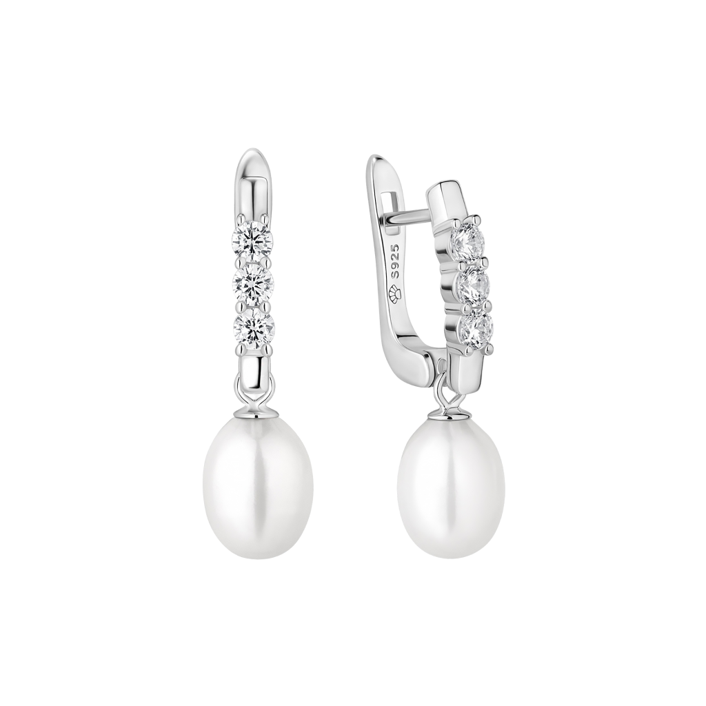 Sidabriniai auskarai su perlais ir cirkoniais