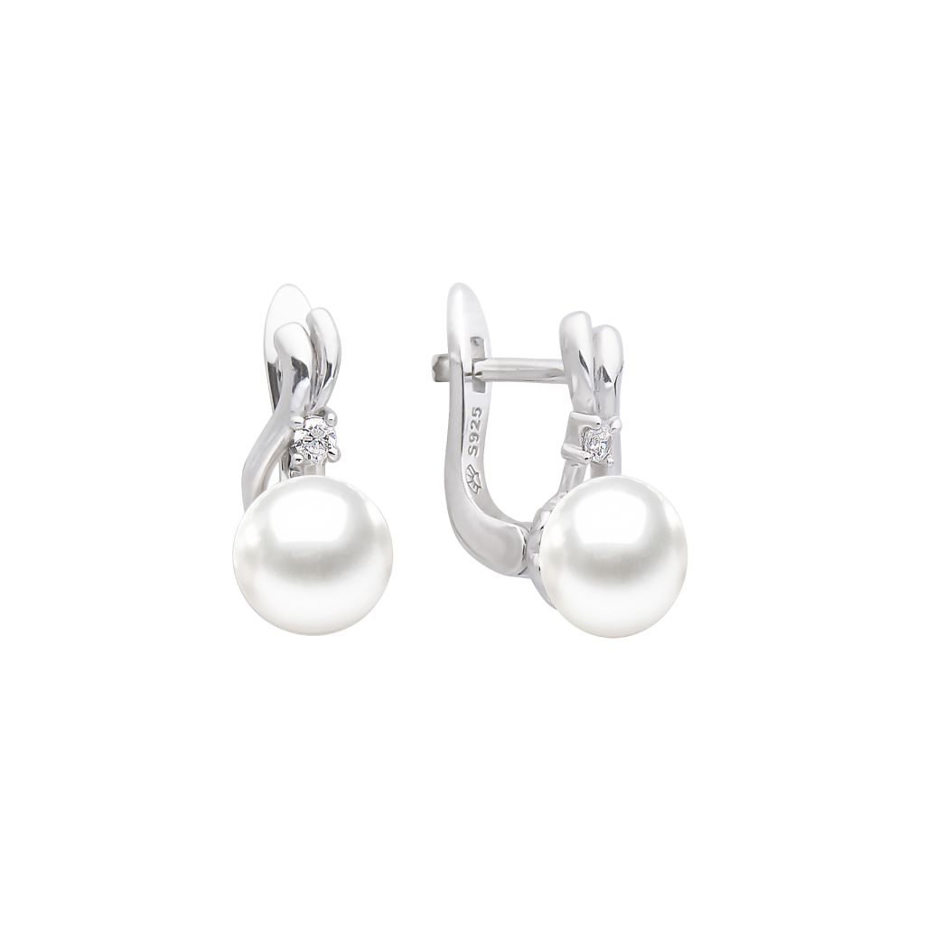 Sidabriniai auskarai su perlais ir cirkoniais - Auskarai su perlais - Goldinga