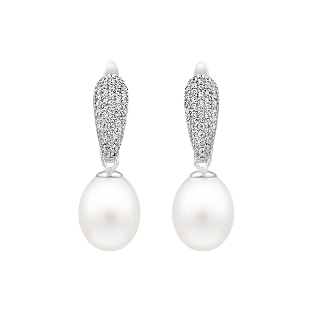 Sidabriniai auskarai su perlais ir cirkoniais - Auskarai su perlais - Goldinga