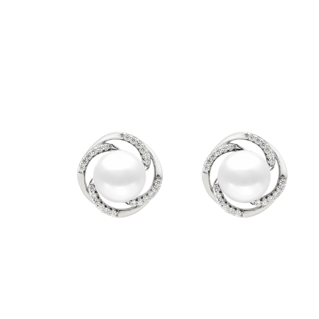 Sidabriniai auskarai su perlais ir cirkoniais
