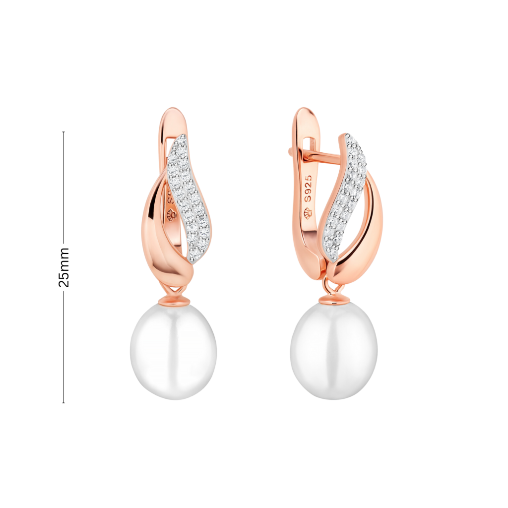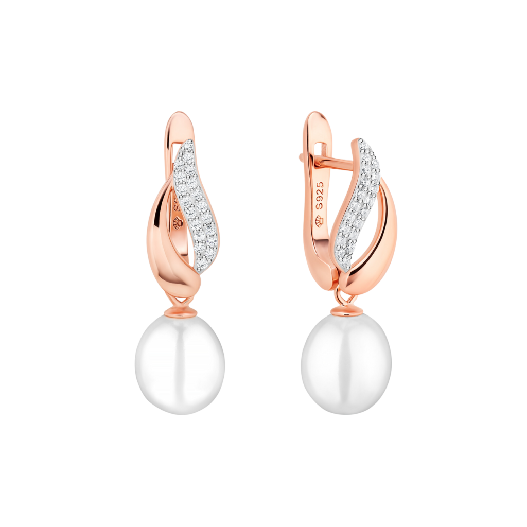 Paauksuoti Sidabriniai auskarai su perlais ir cirkoniu