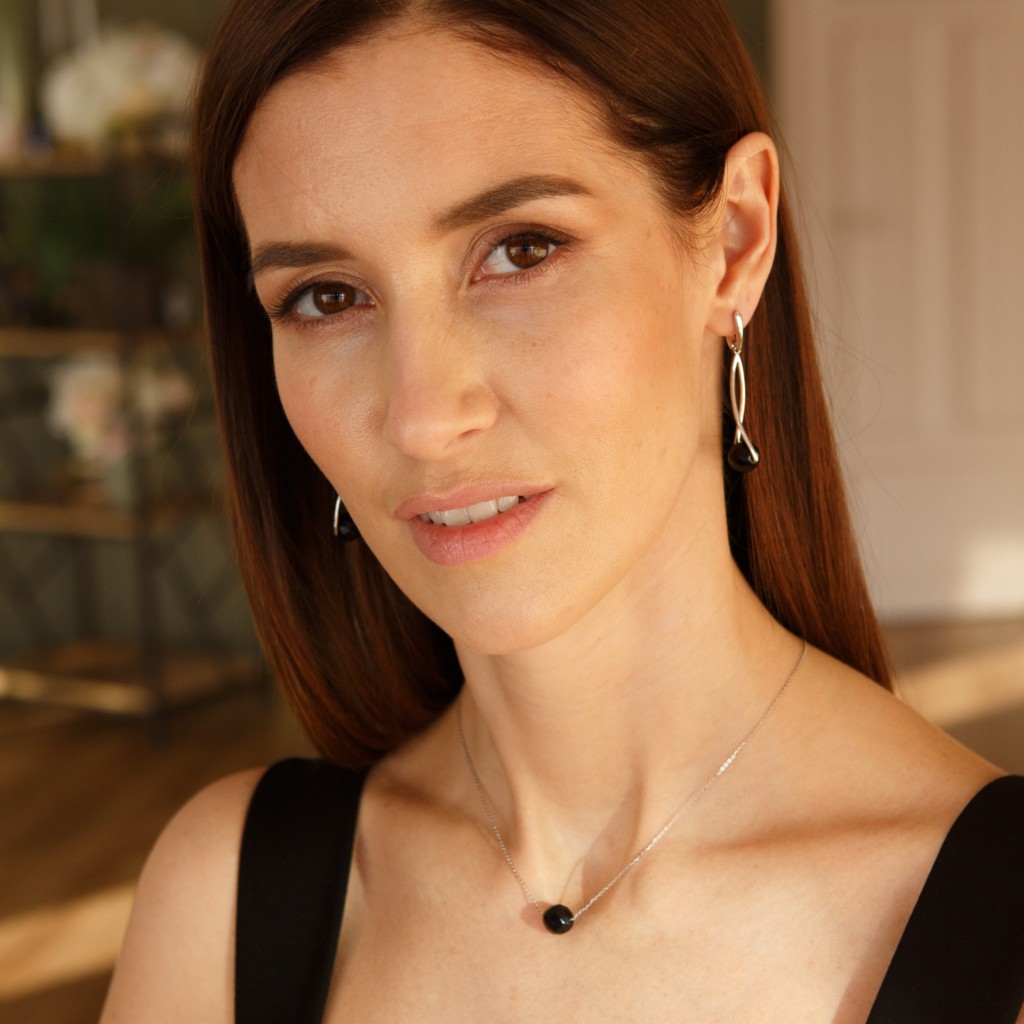 Sidabriniai auskarai su oniksais