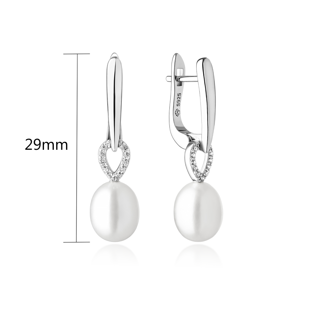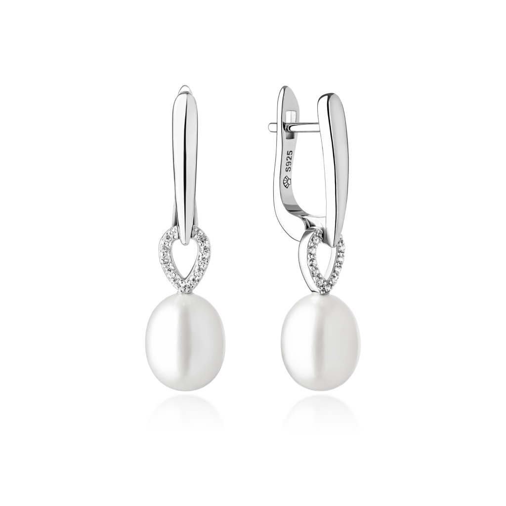 Sidabriniai auskarai su cirkoniais ir natūraliais perlais