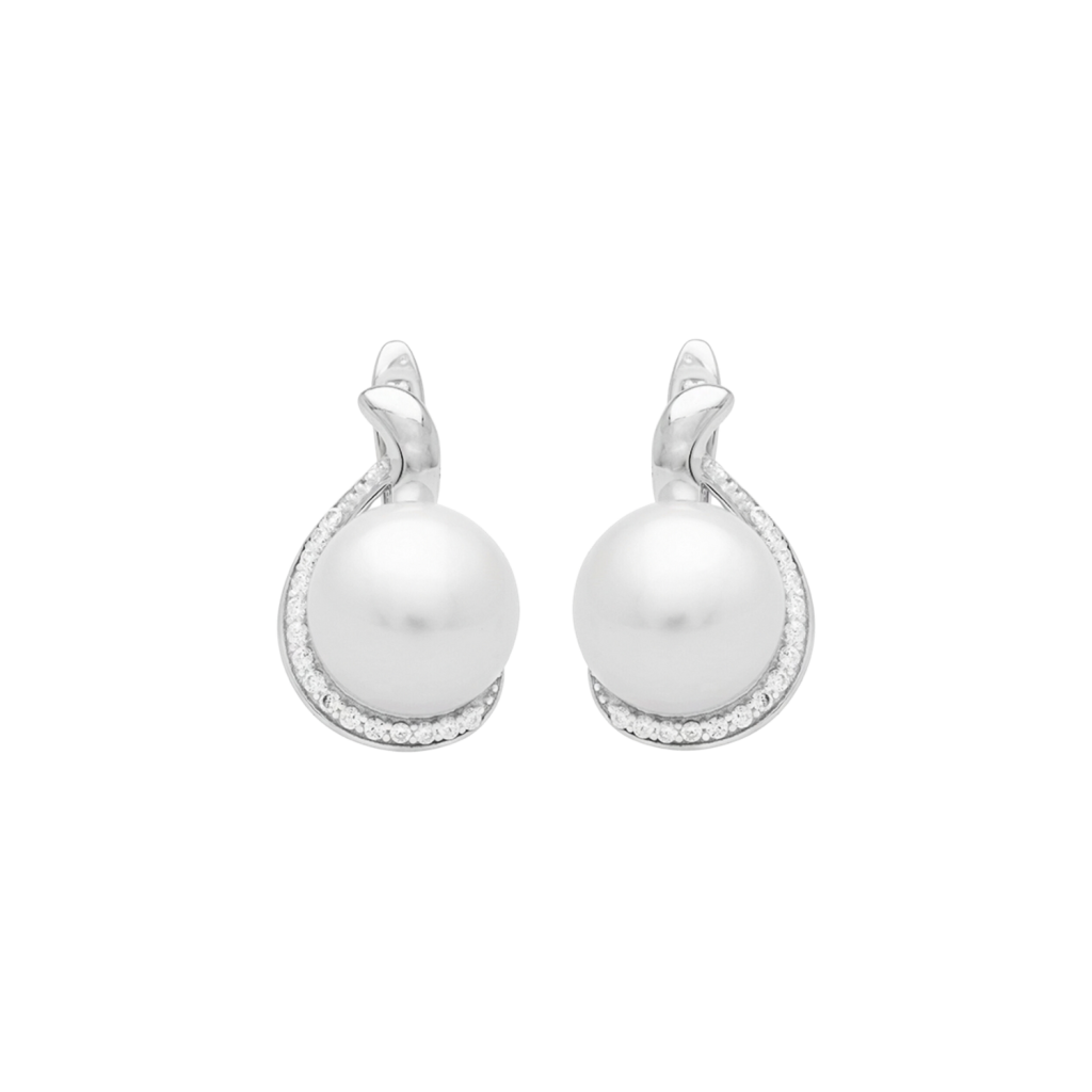 Sidabriniai auskarai su cirkoniais ir natūraliais perlais