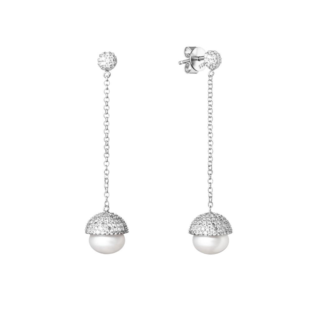Sidabriniai auskarai su natūraliu perlu ir cirkoniais