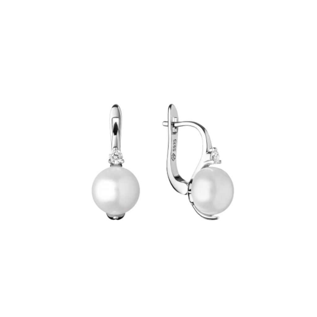 Sidabriniai auskarai su natūraliu perlu ir cirkoniais