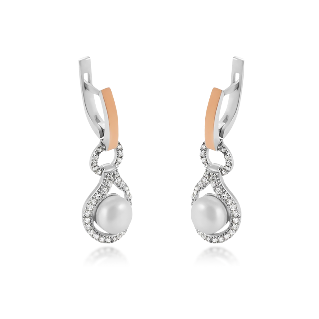 Sidabriniai auskarai su perlu ir cirkoniais dengti auksu - Auskarai su perlais - Goldinga
