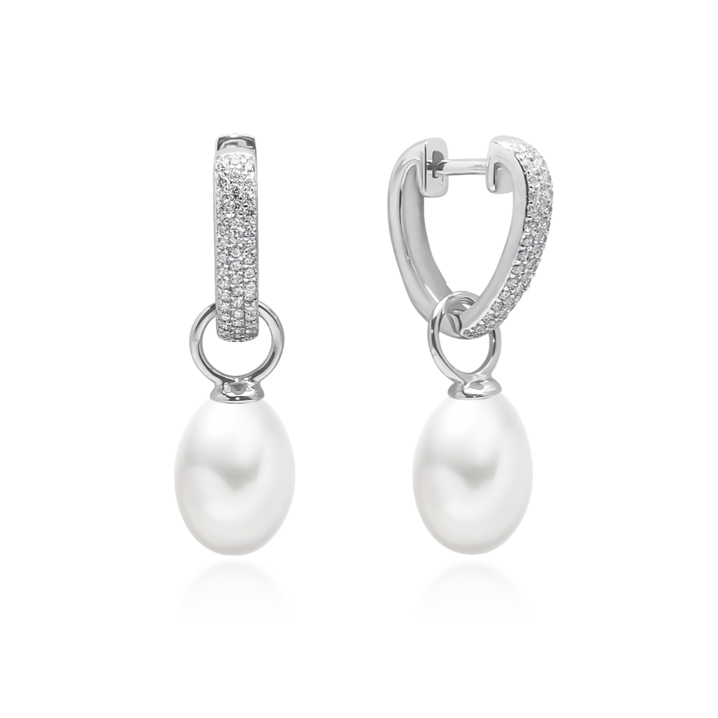 Sidabriniai auskarai su perlais ir cirkoniais - Auskarai su perlais - Goldinga