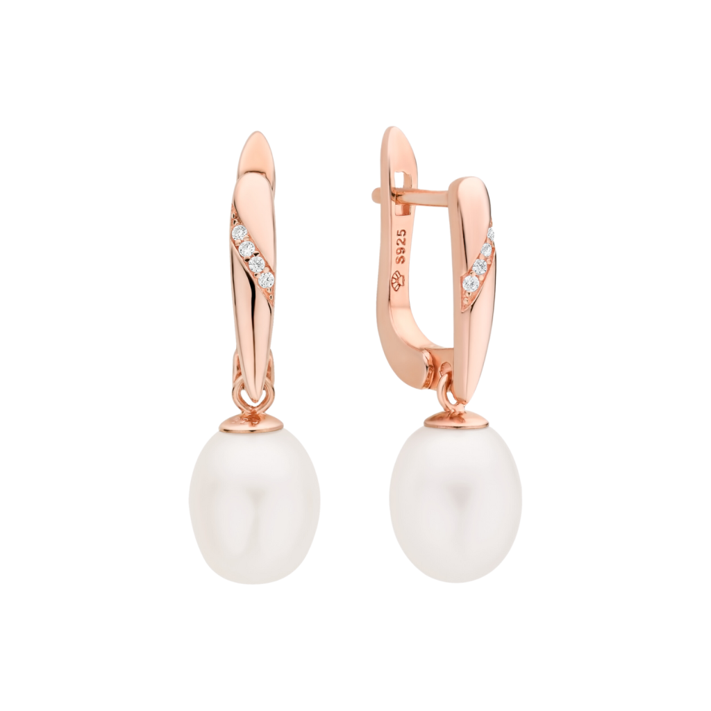 Paauksuoti sidabriniai auskarai su perlais ir cirkoniais