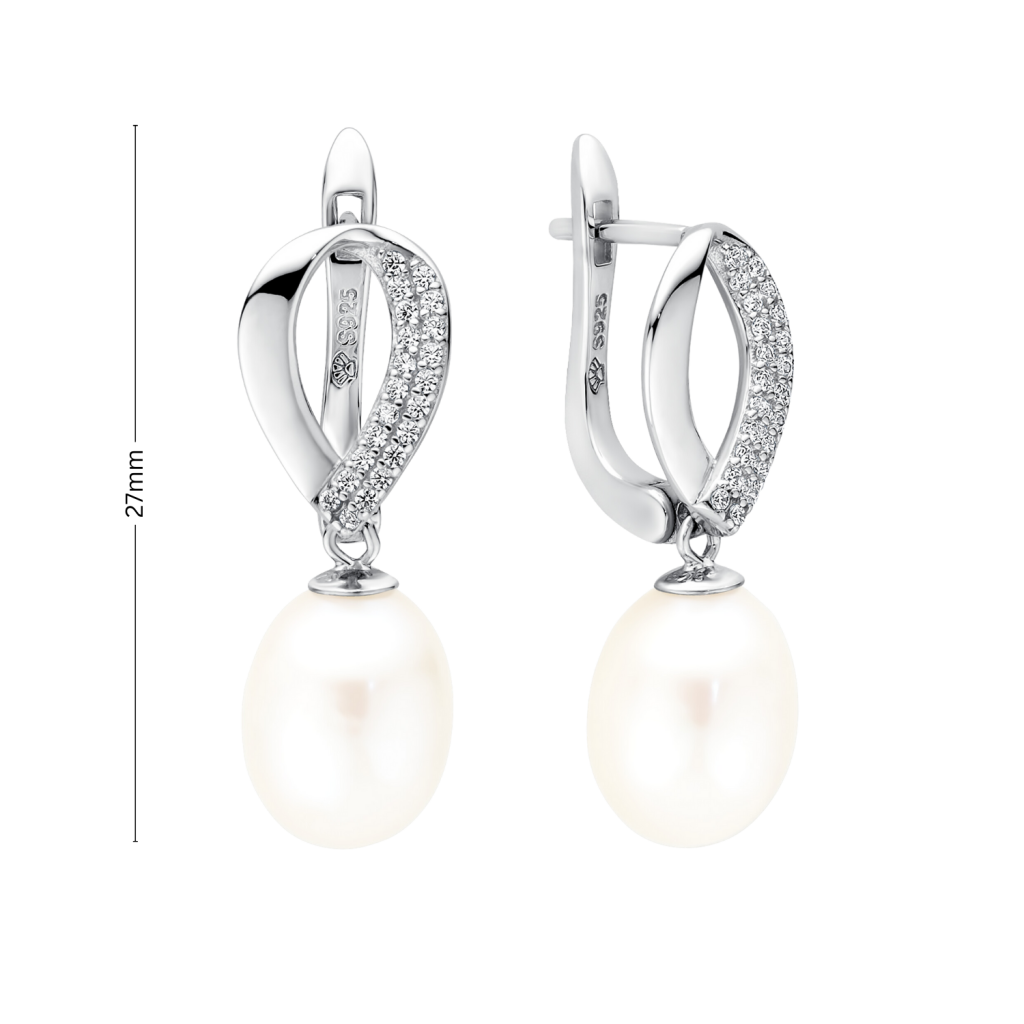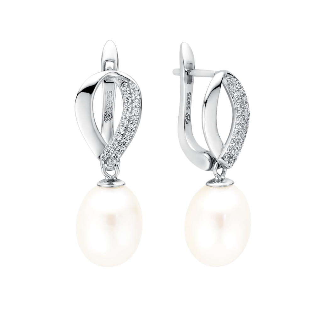 Sidabriniai auskarai su perlais ir cirkoniais