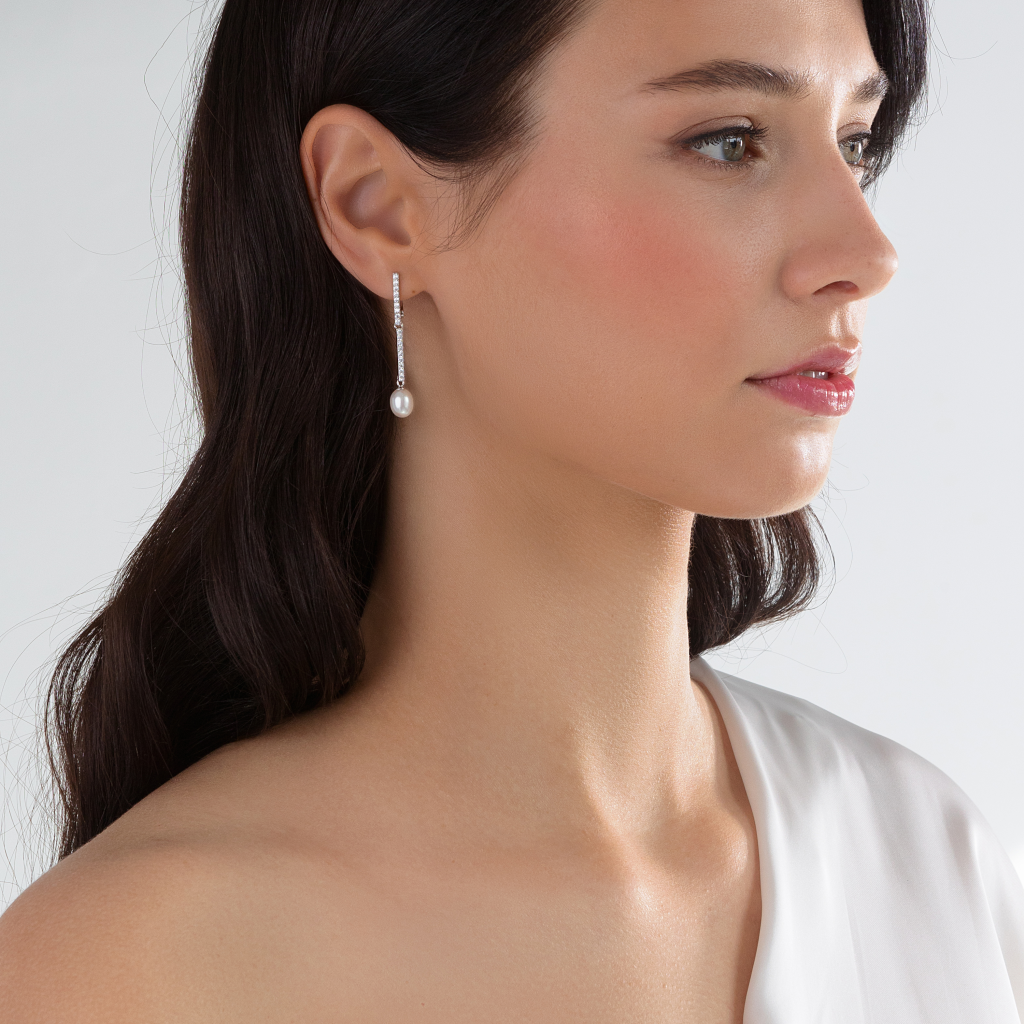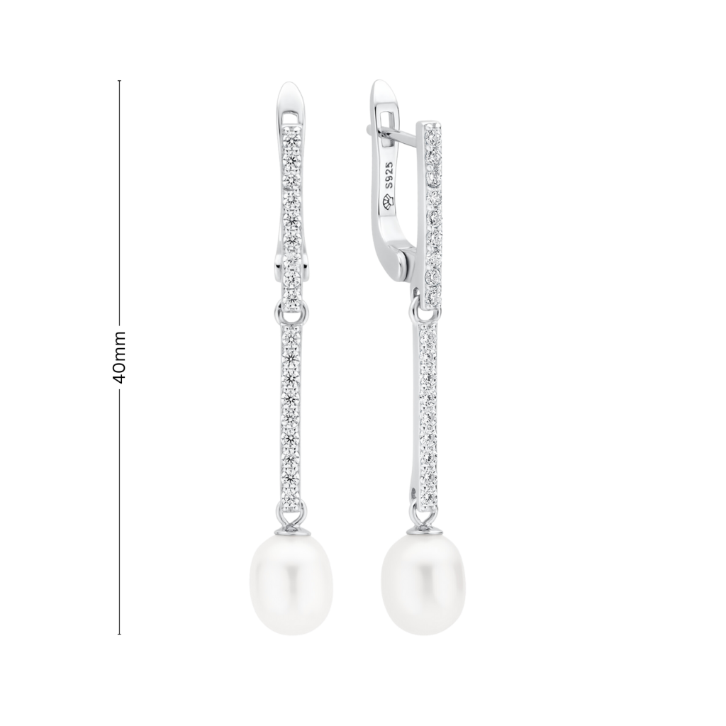 Sidabriniai auskarai su perlais ir cirkoniais - Auskarai su perlais - Goldinga