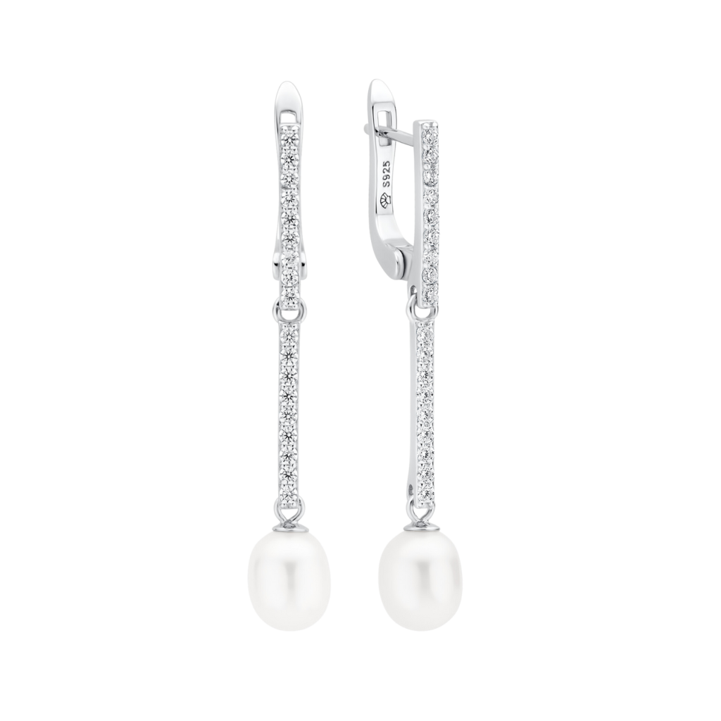 Sidabriniai auskarai su perlais ir cirkoniais