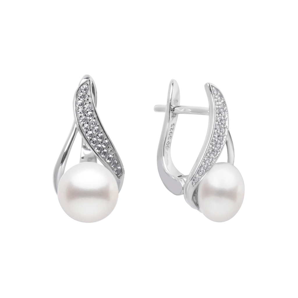 Sidabriniai auskarai su perlais ir cirkoniais