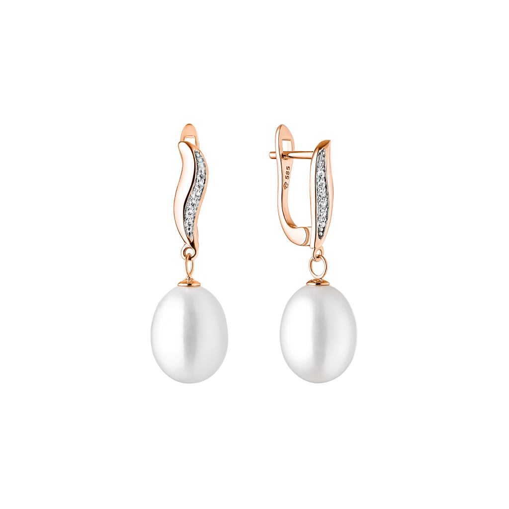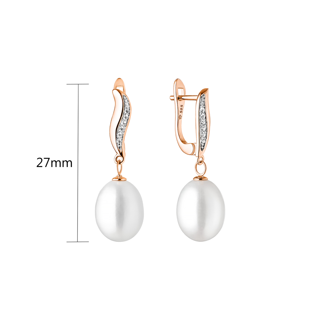 Auksiniai Auskarai Su Perlais Ir Cirkoniais - Auskarai su perlais - Goldinga