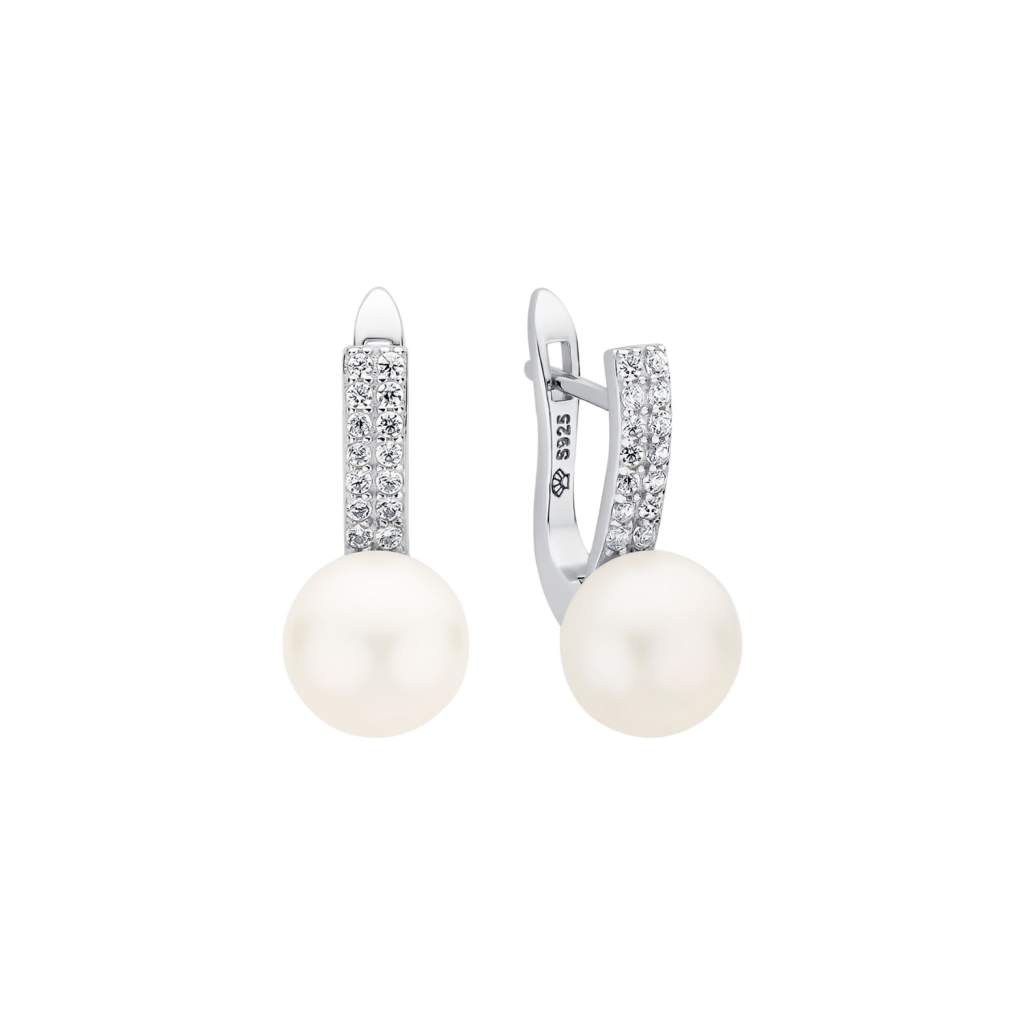 Sidabriniai auskarai su perlais ir cirkoniais