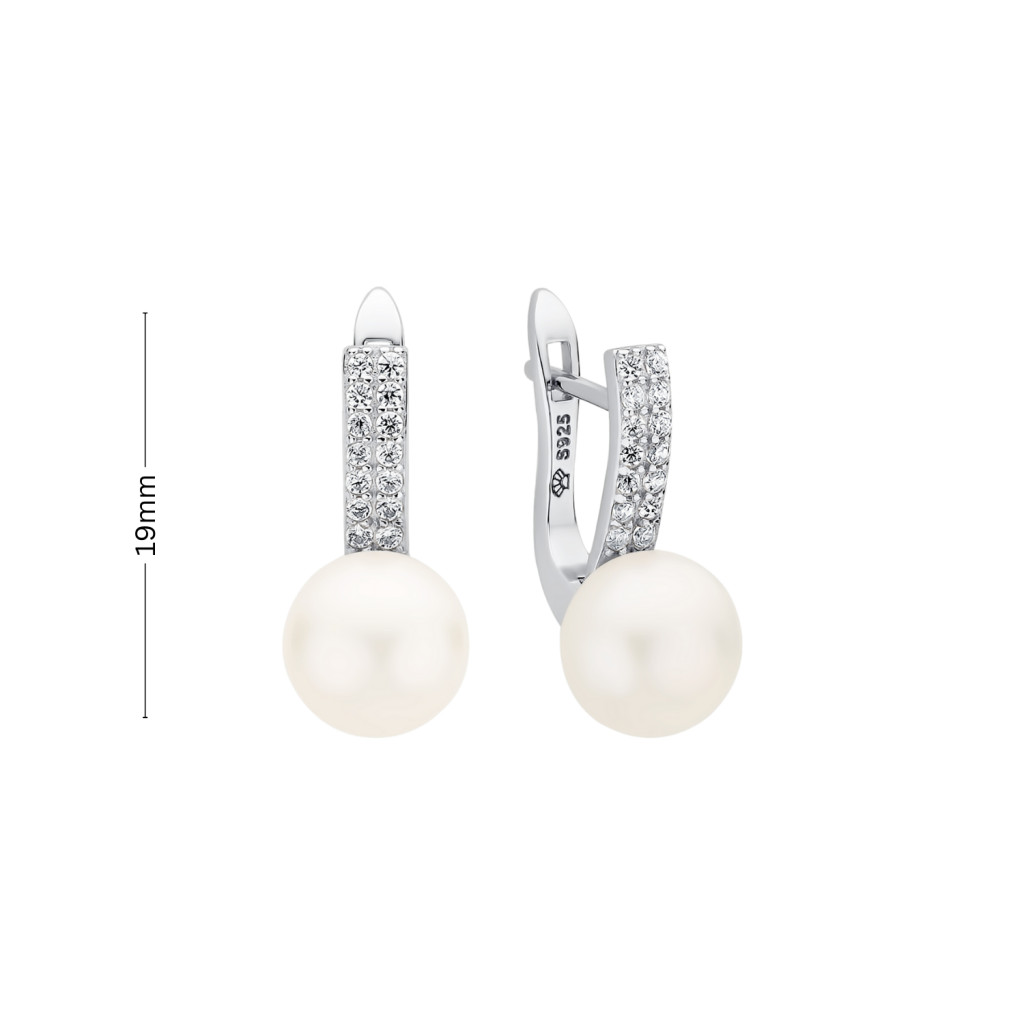 Sidabriniai auskarai su perlais ir cirkoniais - Auskarai su perlais - Goldinga