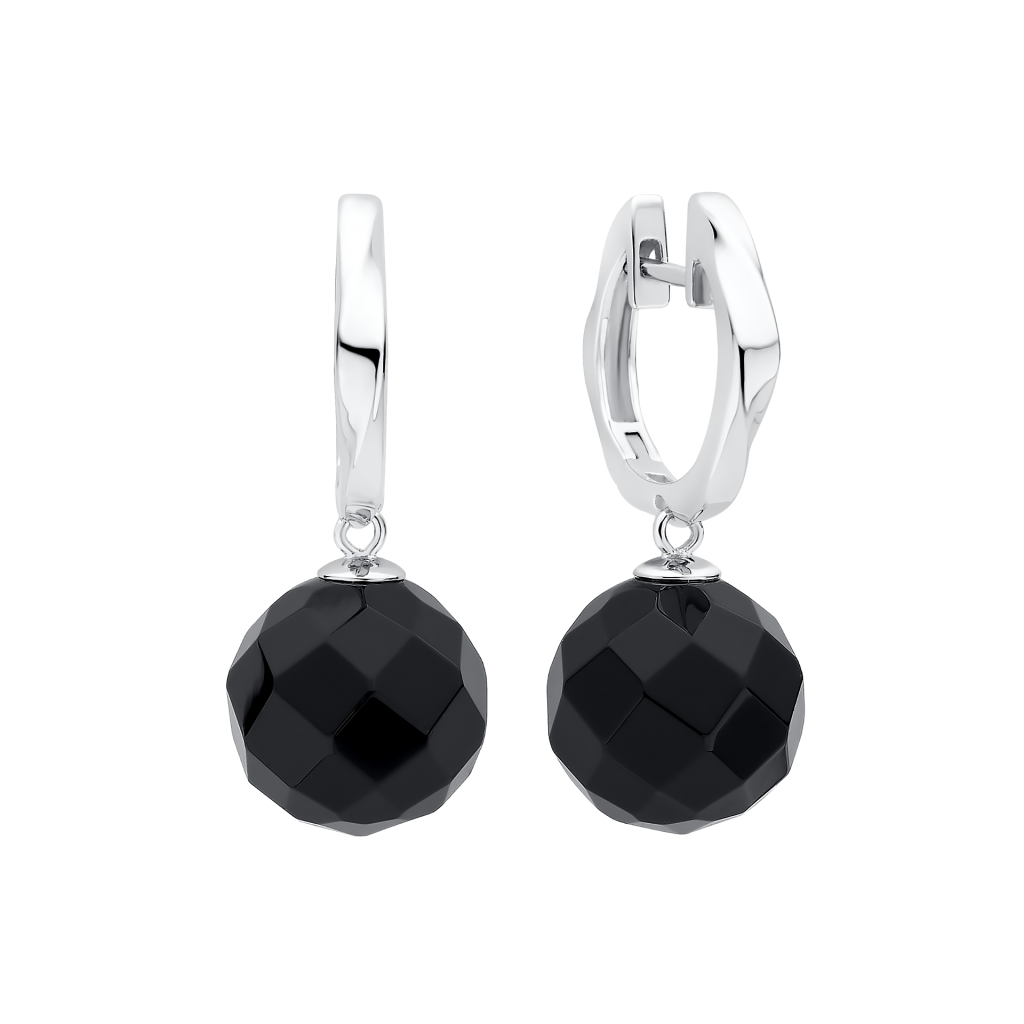 Sidabriniai auskarai su oniksais