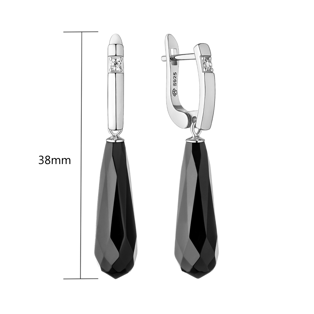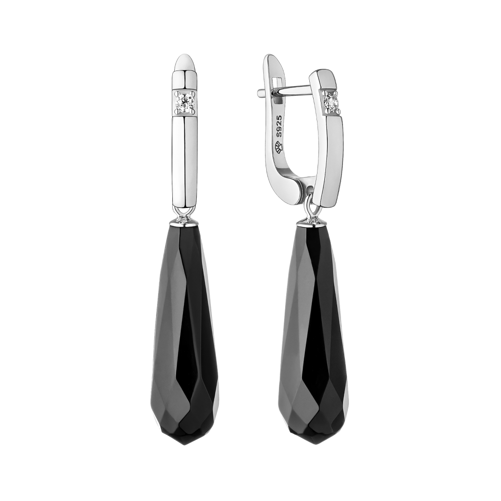 Sidabriniai auskarai su oniksais ir cirkoniais
