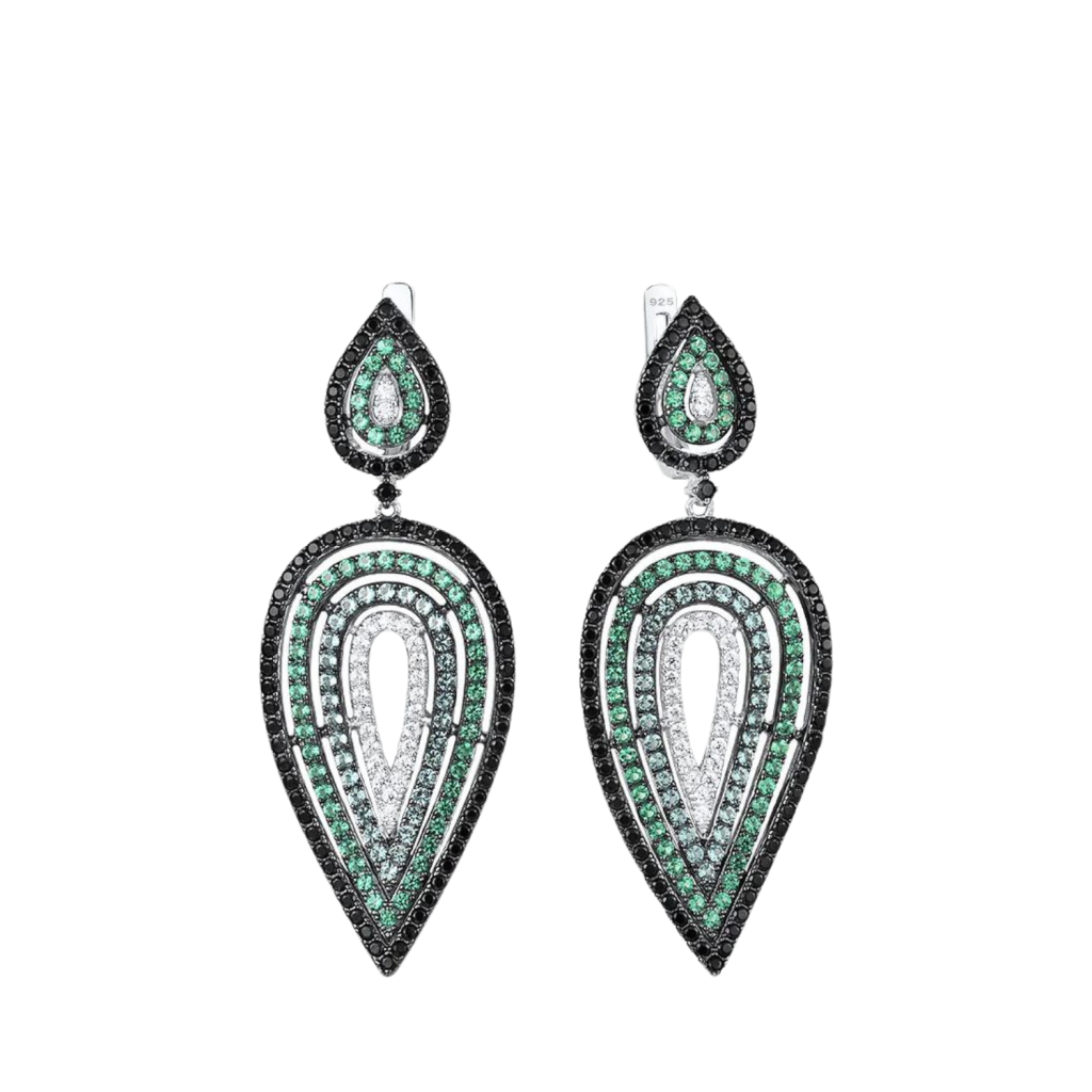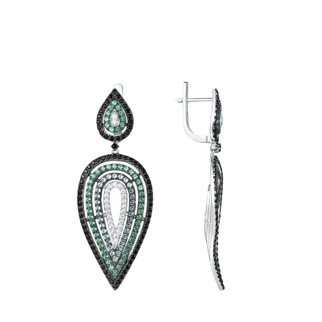 Sidabriniai auskarai su cirkoniais ir špineliais