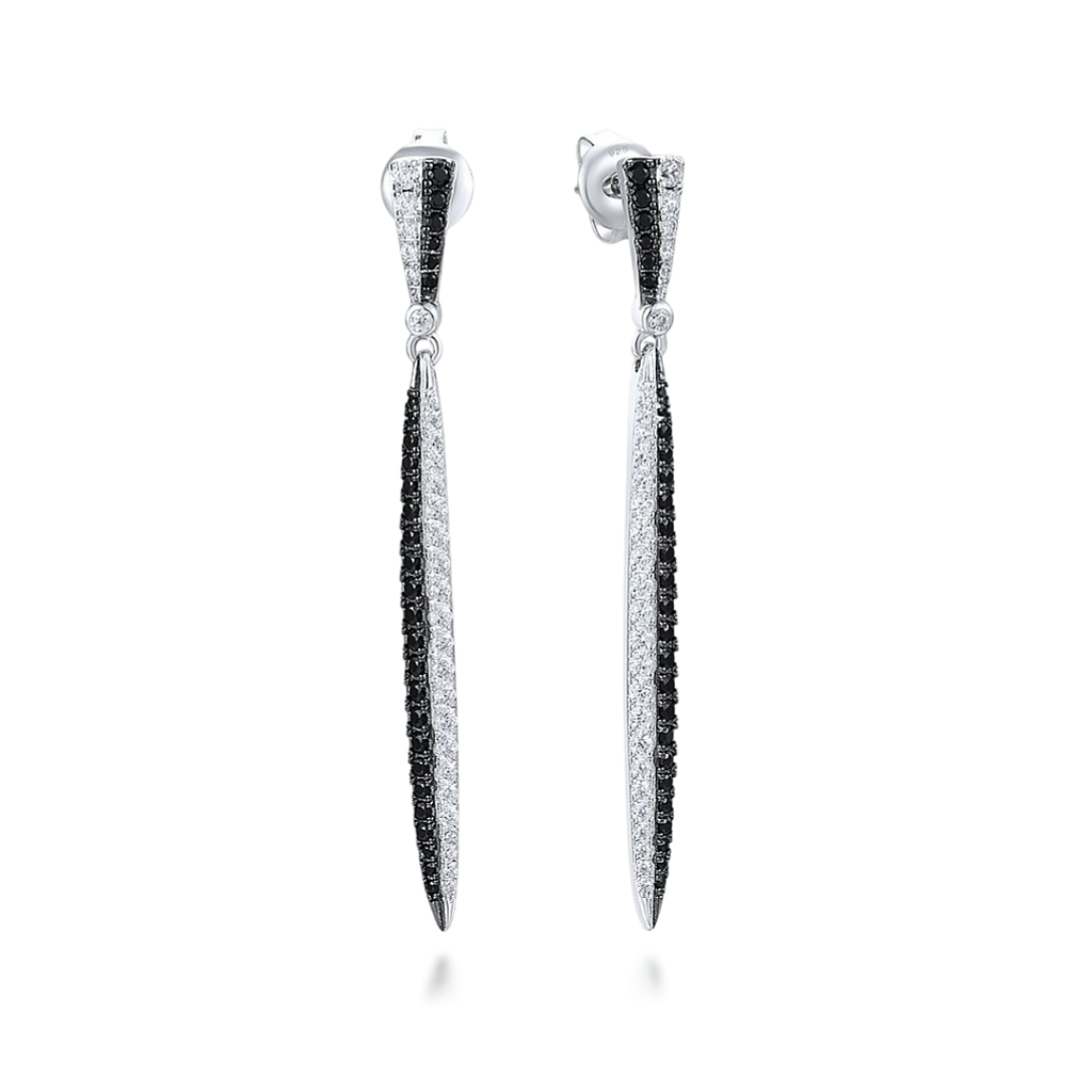 Sidabriniai auskarai su cirkoniais ir špineliais