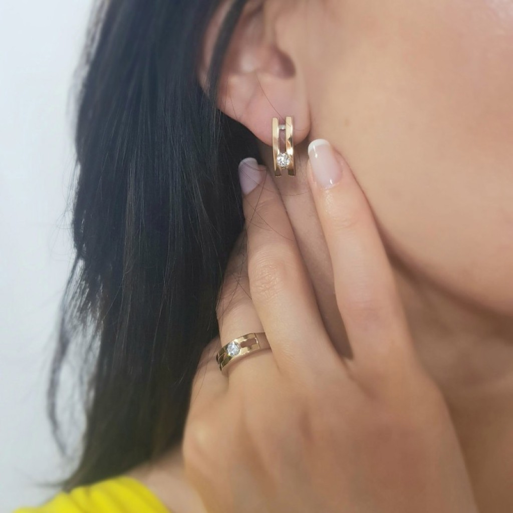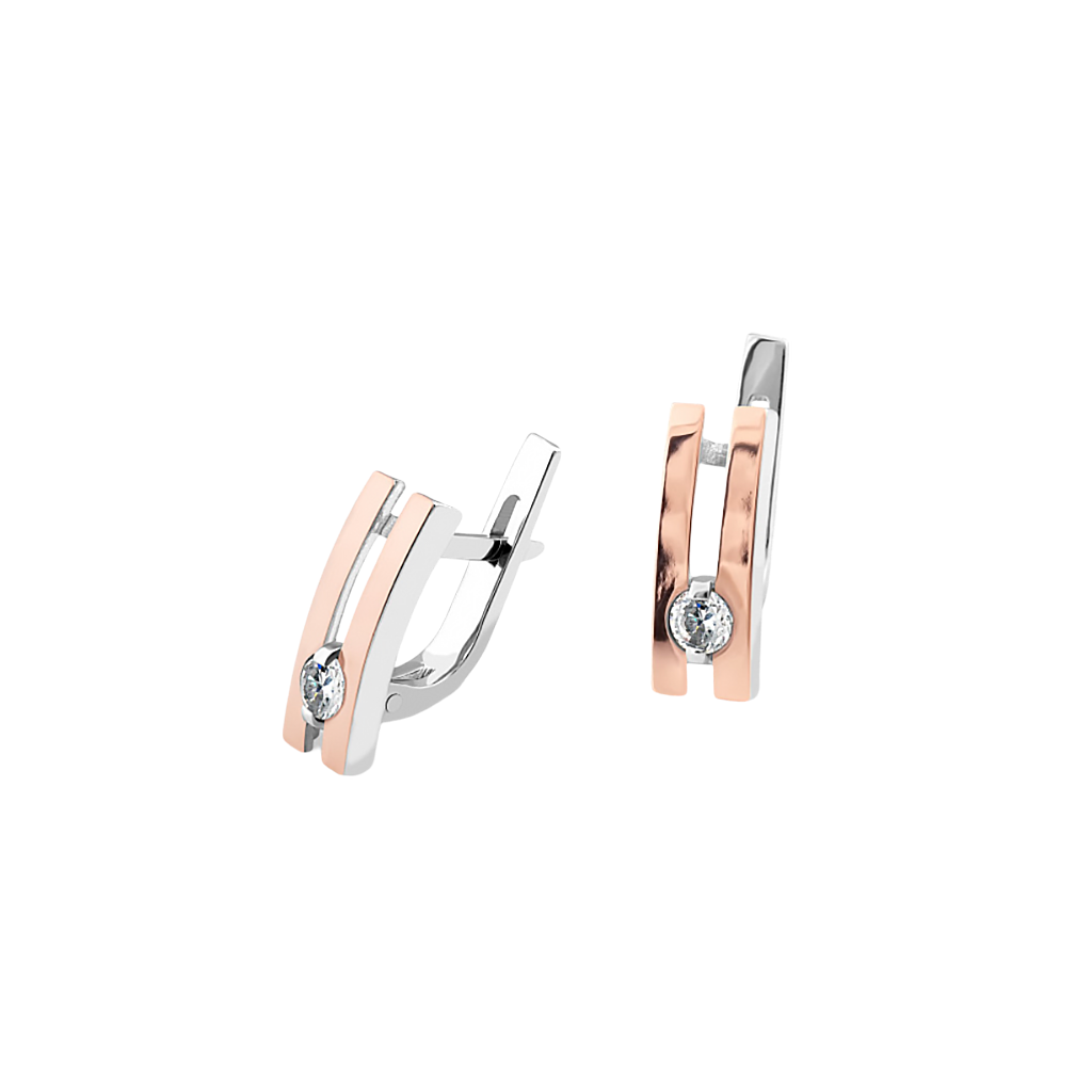Sidabriniai auskarai dengti auksu su cirkoniais - Sidabriniai auskarai - Goldinga