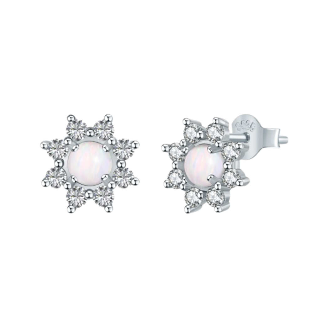 Sidabriniai auskarai su cirkoniais ir opalu