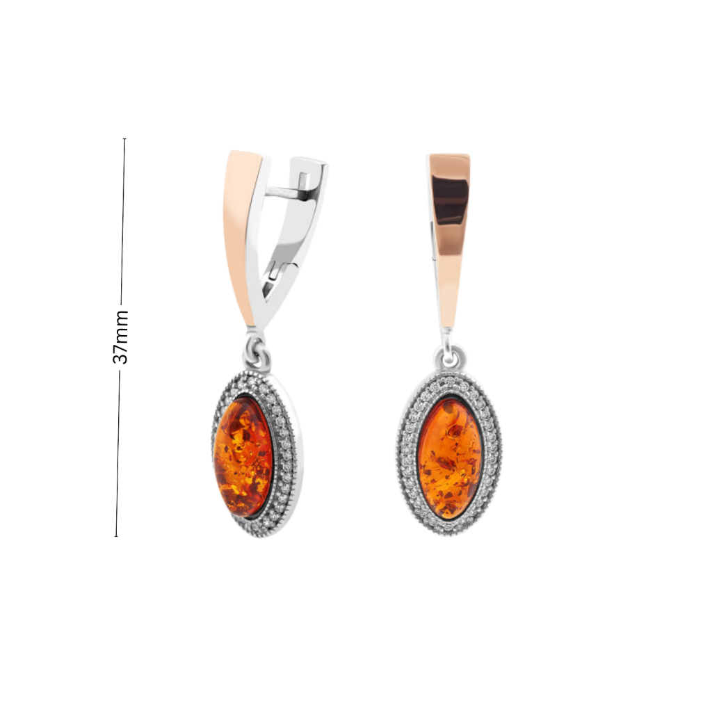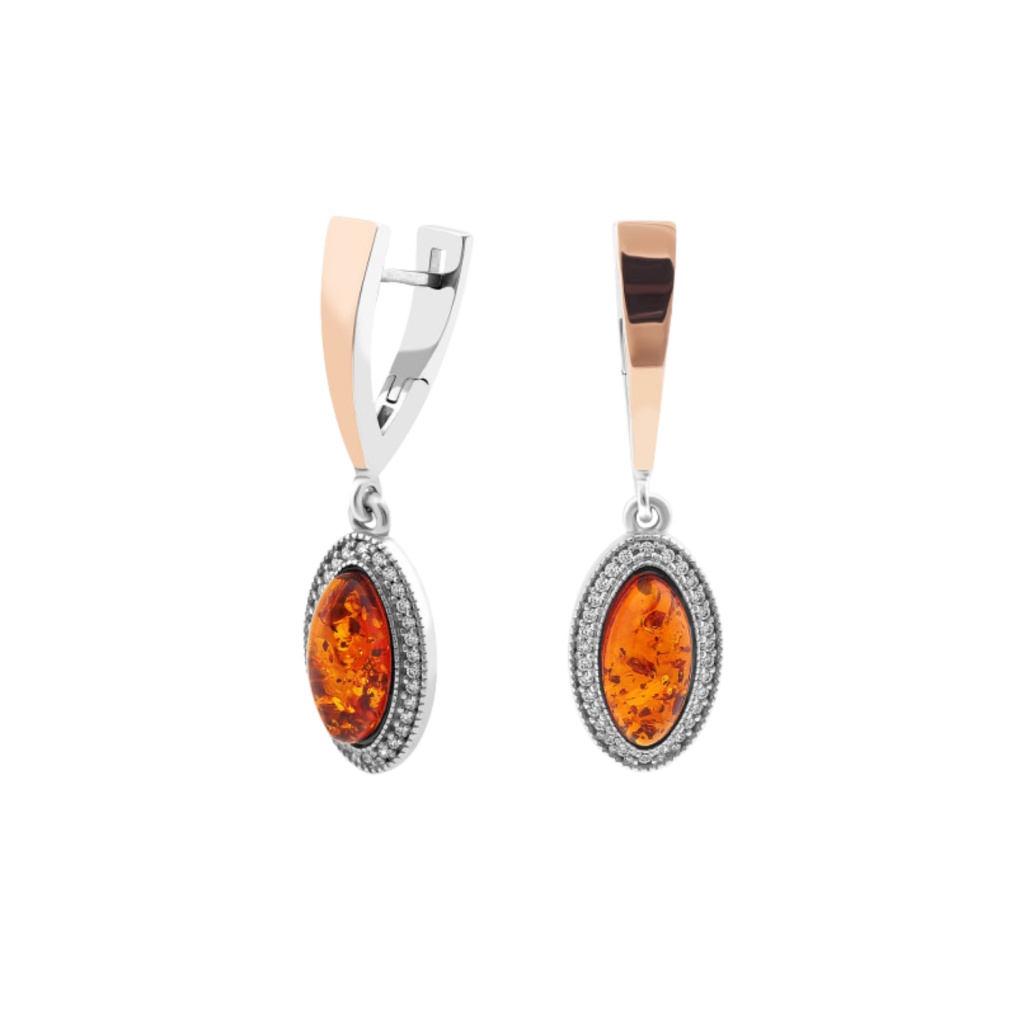 Sidabriniai auskarai dengti auksu su cirkoniais ir gintaru