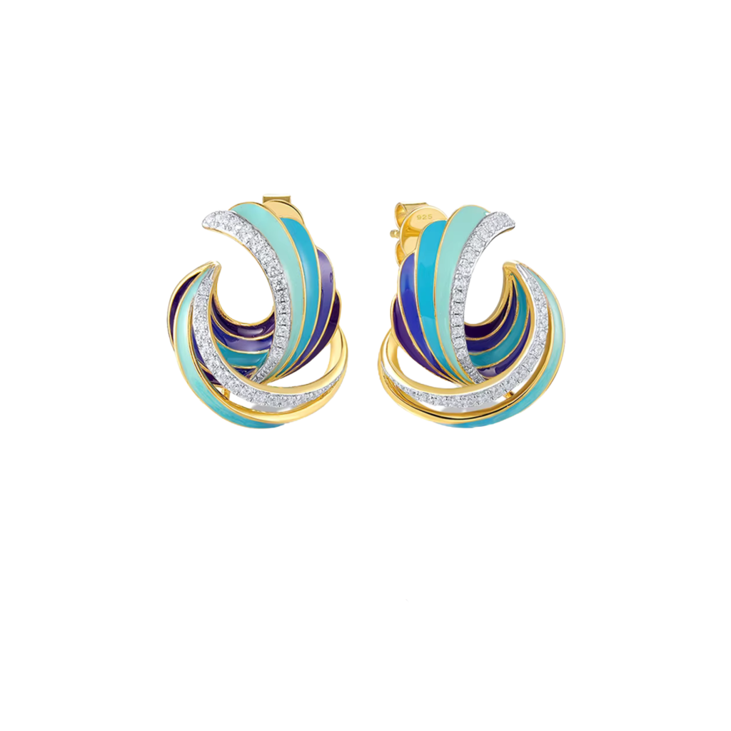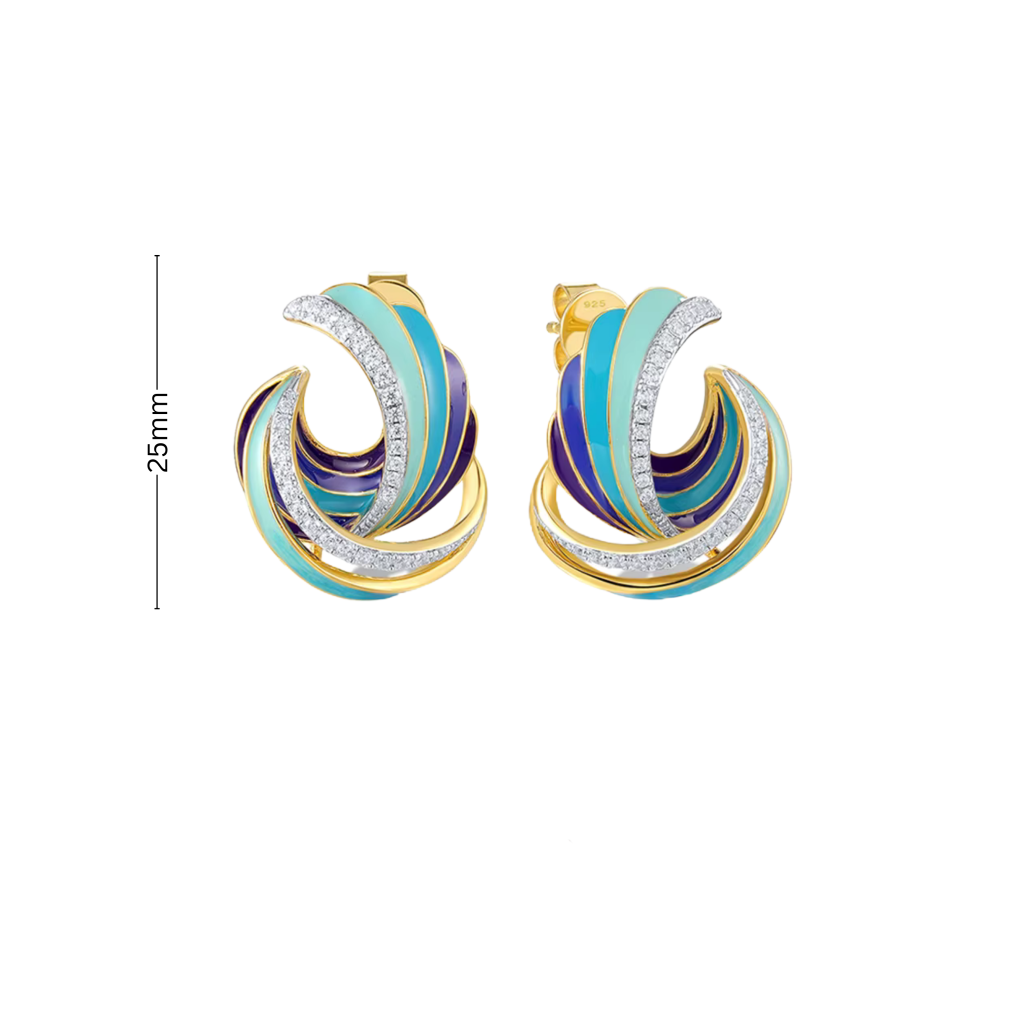 Paauksuoti sidabriniai auskarai su emale ir cirkoniais