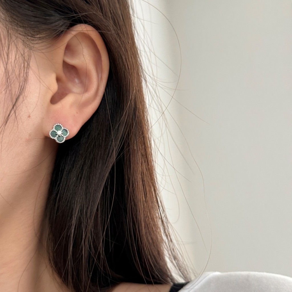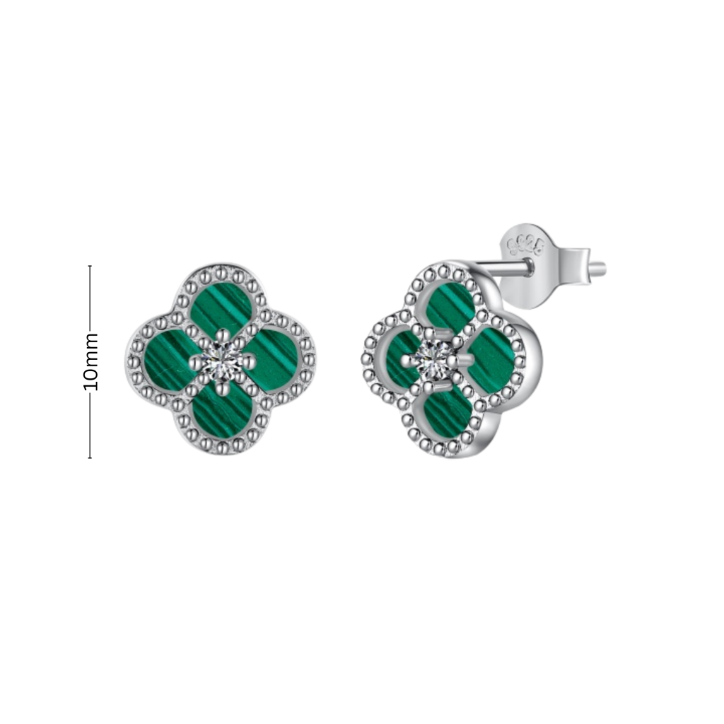 Sidabriniai auskarai su malachitu ir cirkoniais