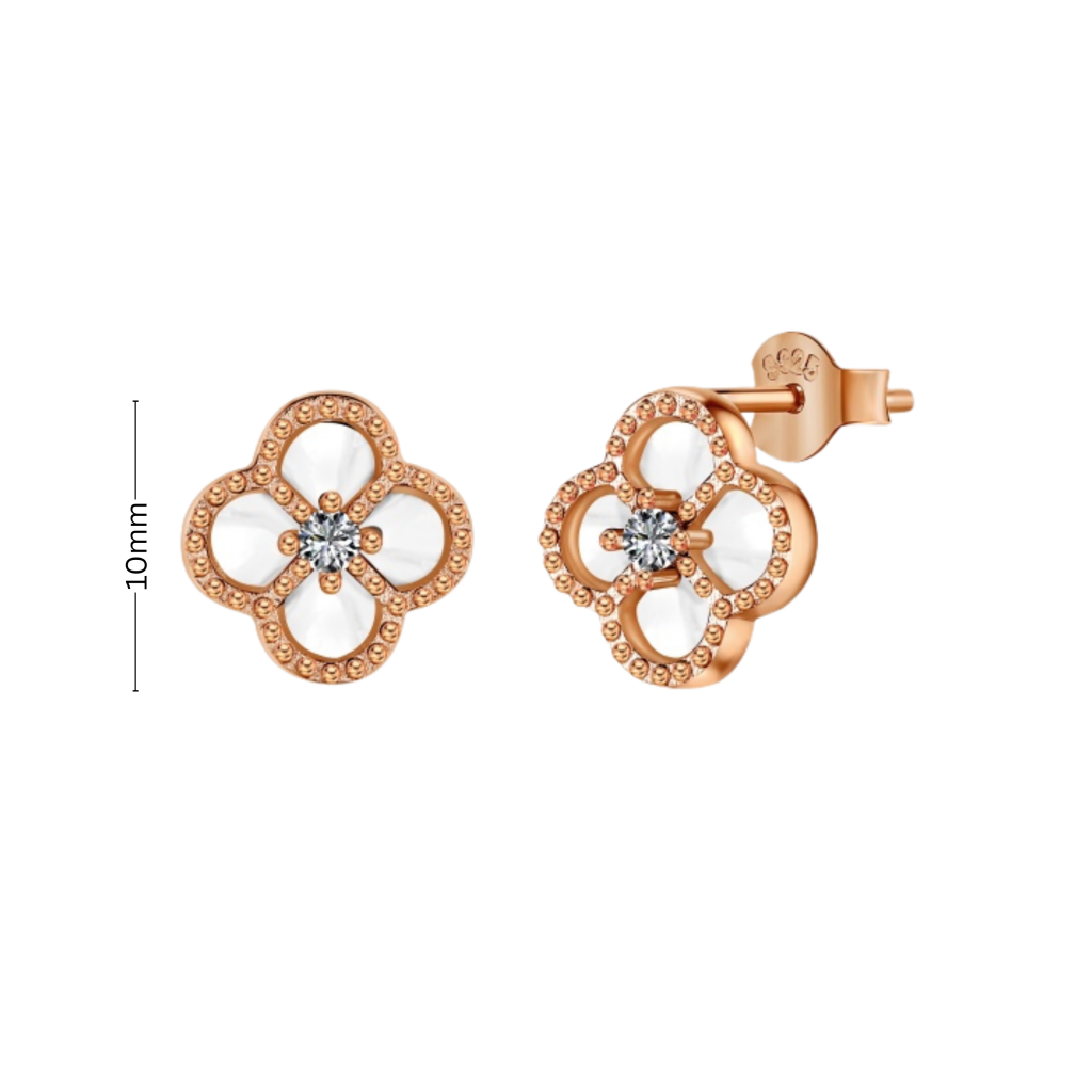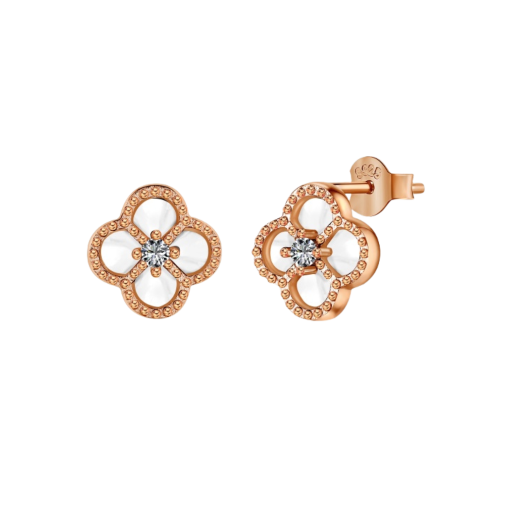 Paauksuoti sidabriniai auskarai su perlamutru ir cirkoniais