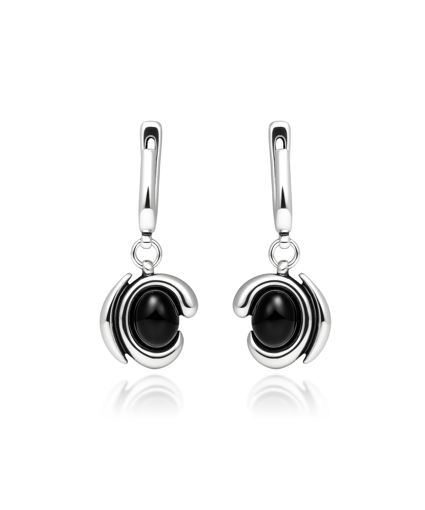Sidabriniai auskarai su Oniksu