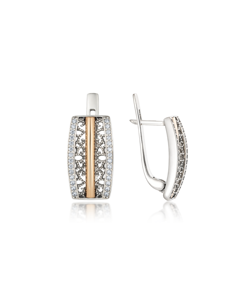 Sidabriniai auskarai dengti auksu su cirkoniais