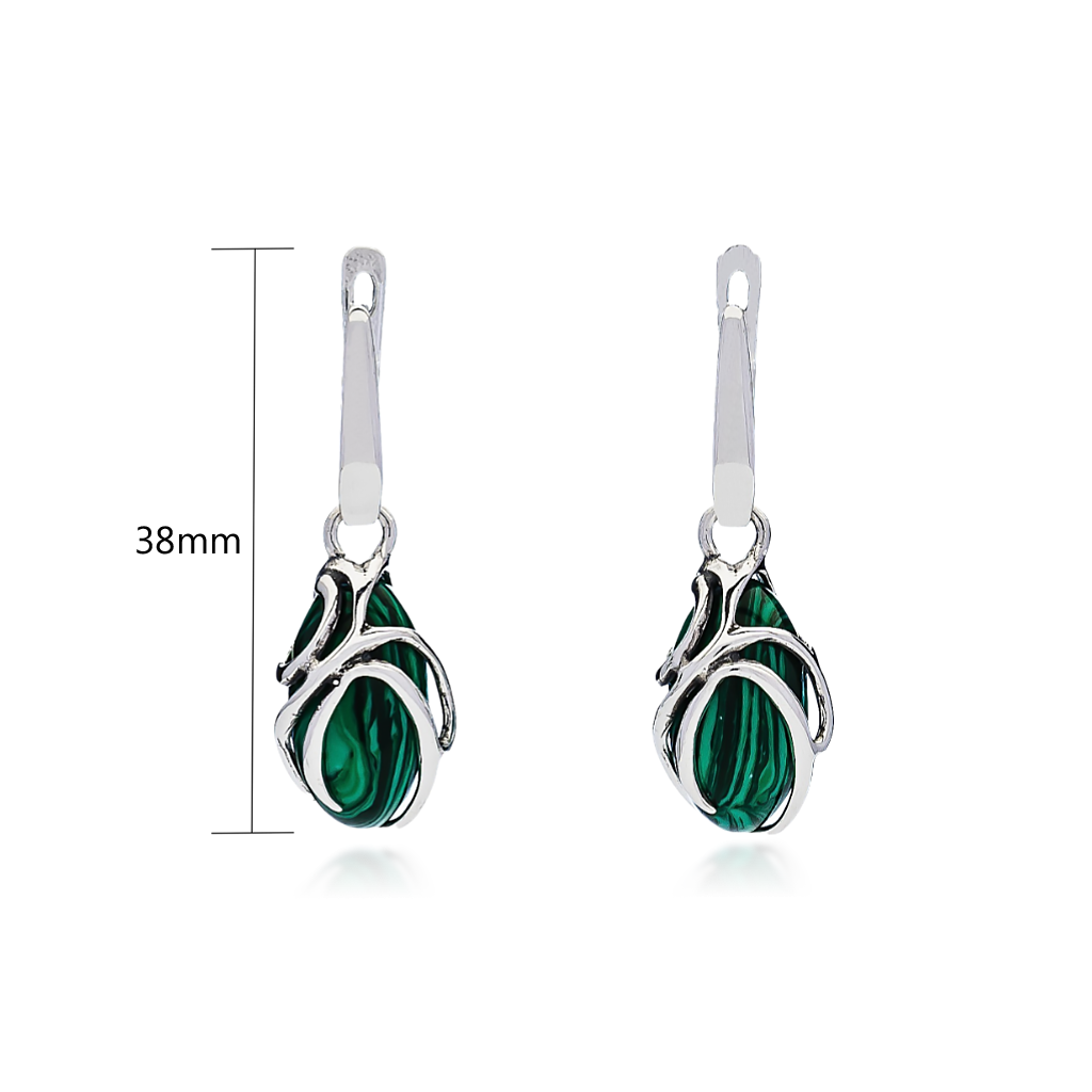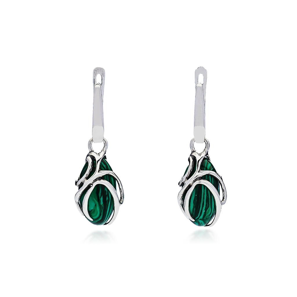 Sidabriniai auskarai su malachitu - Sidabriniai auskarai - Goldinga