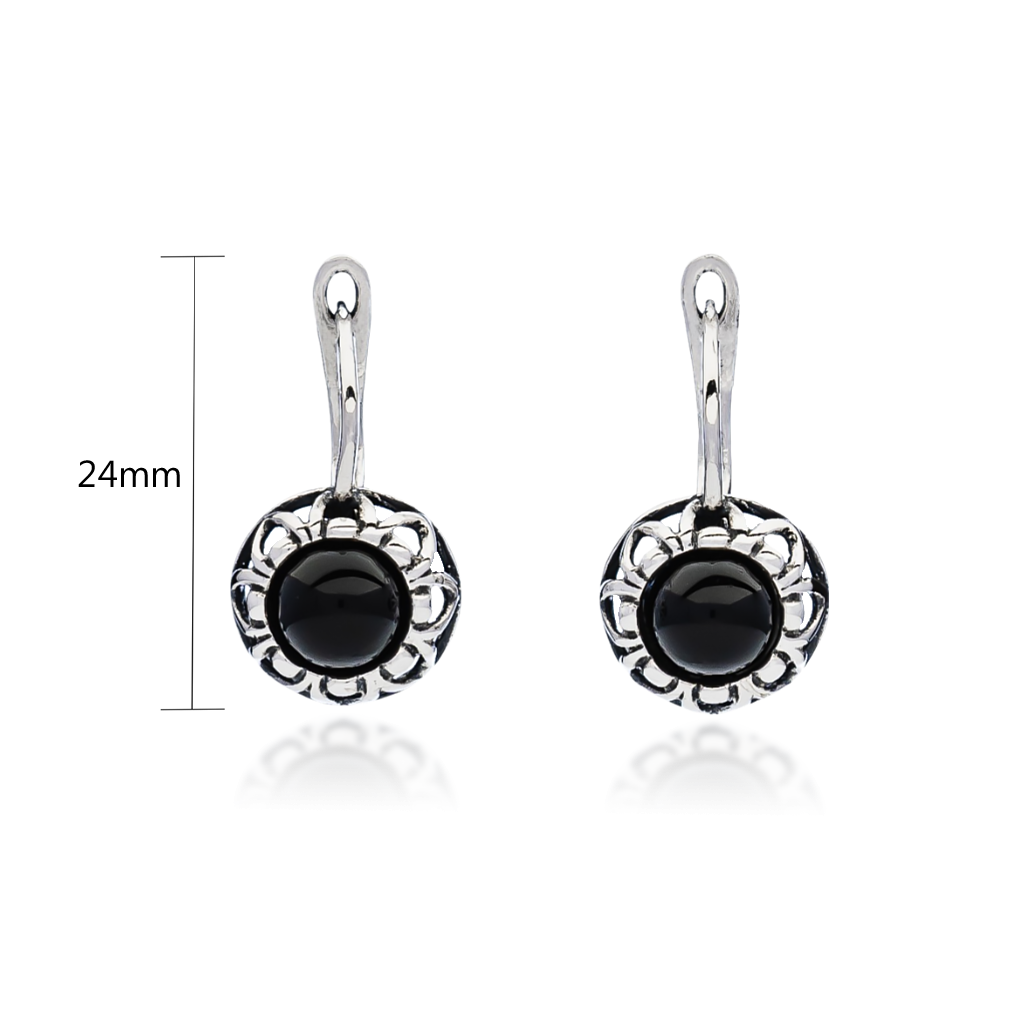 Sidabriniai auskarai su oniksu
