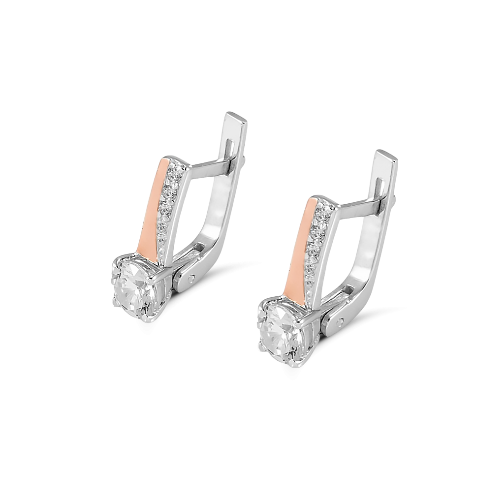 Sidabriniai auskarai su cirkoniais dengti auksu - Sidabriniai auskarai - Goldinga