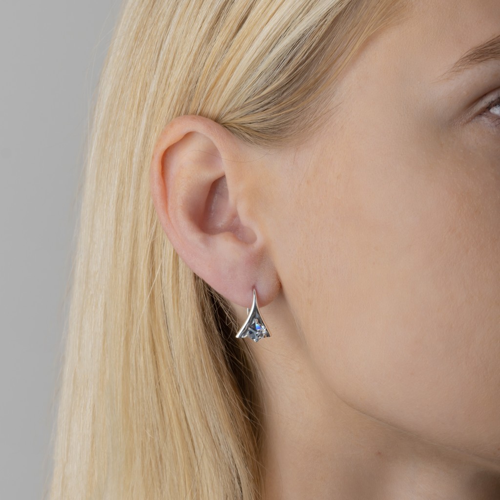 Sidabriniai auskarai su kristalu - Sidabriniai auskarai - Goldinga