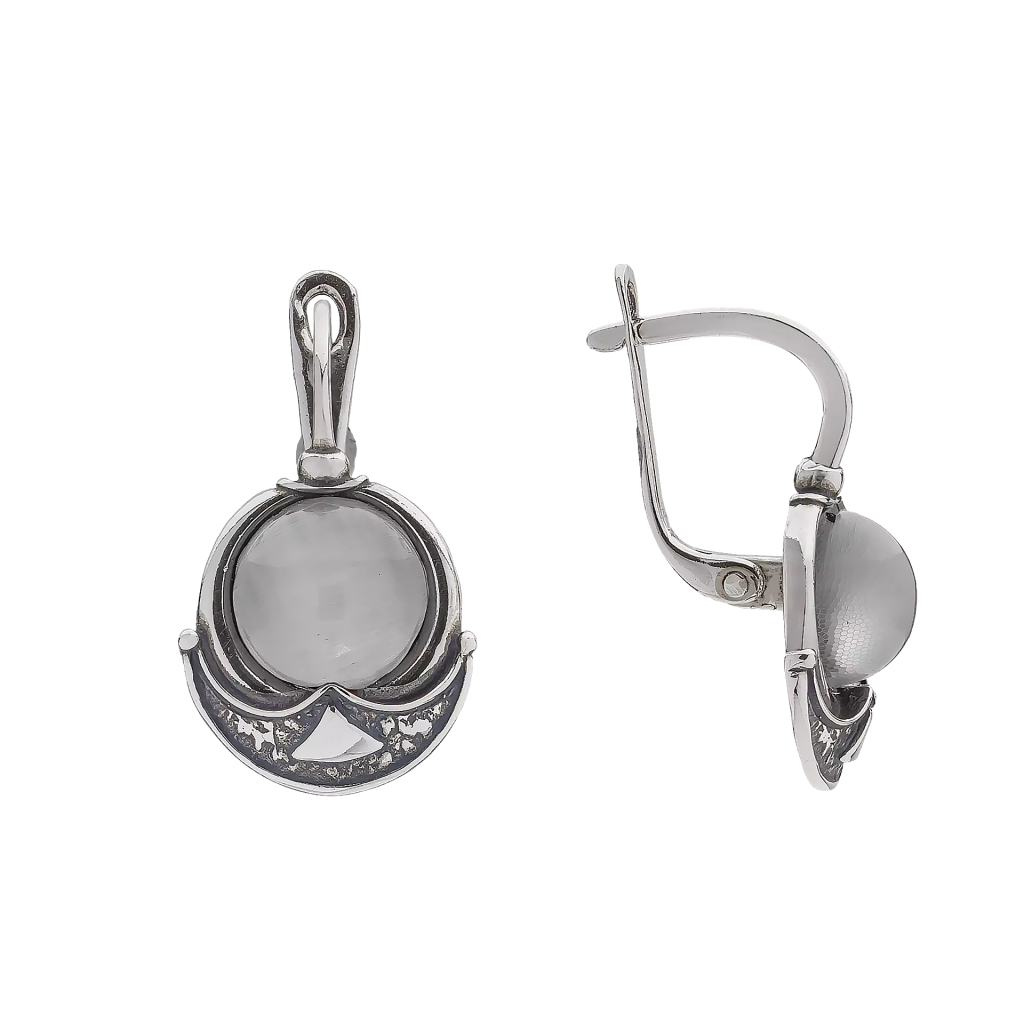 Sidabriniai auskarai su katės akies akmeniu - Sidabriniai auskarai - Goldinga