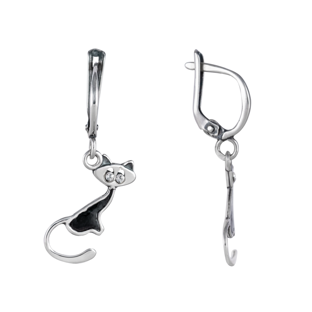 Sidabriniai auskarai su cirkoniais "Katė"