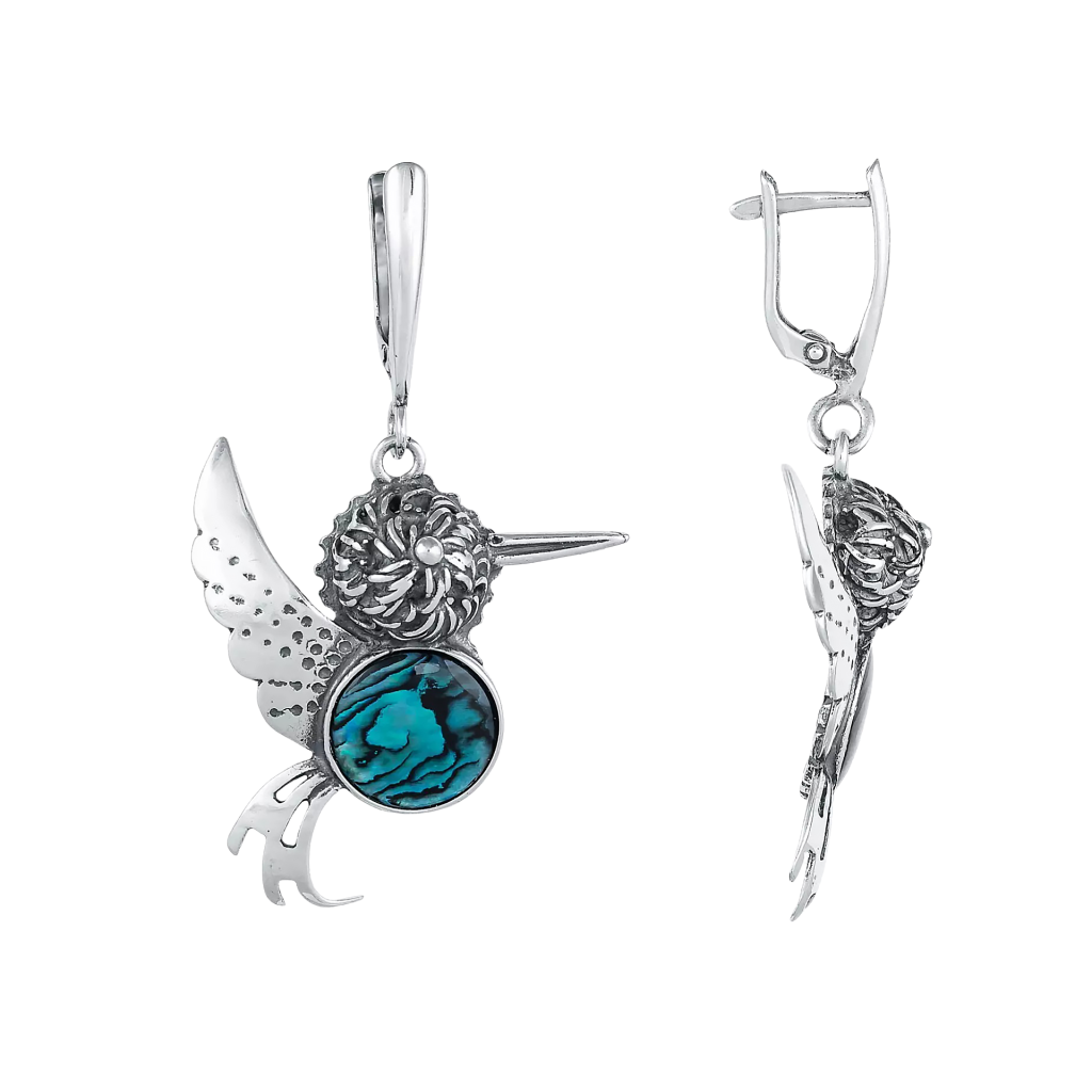 Sidabriniai auskarai su perlamutru "Paukštis" - Sidabriniai auskarai - Goldinga