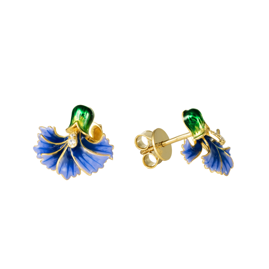 Sidabriniai paauksuoti auskarai su cirkoniais ir emale "Gėlė" - Sidabriniai auskarai - Goldinga