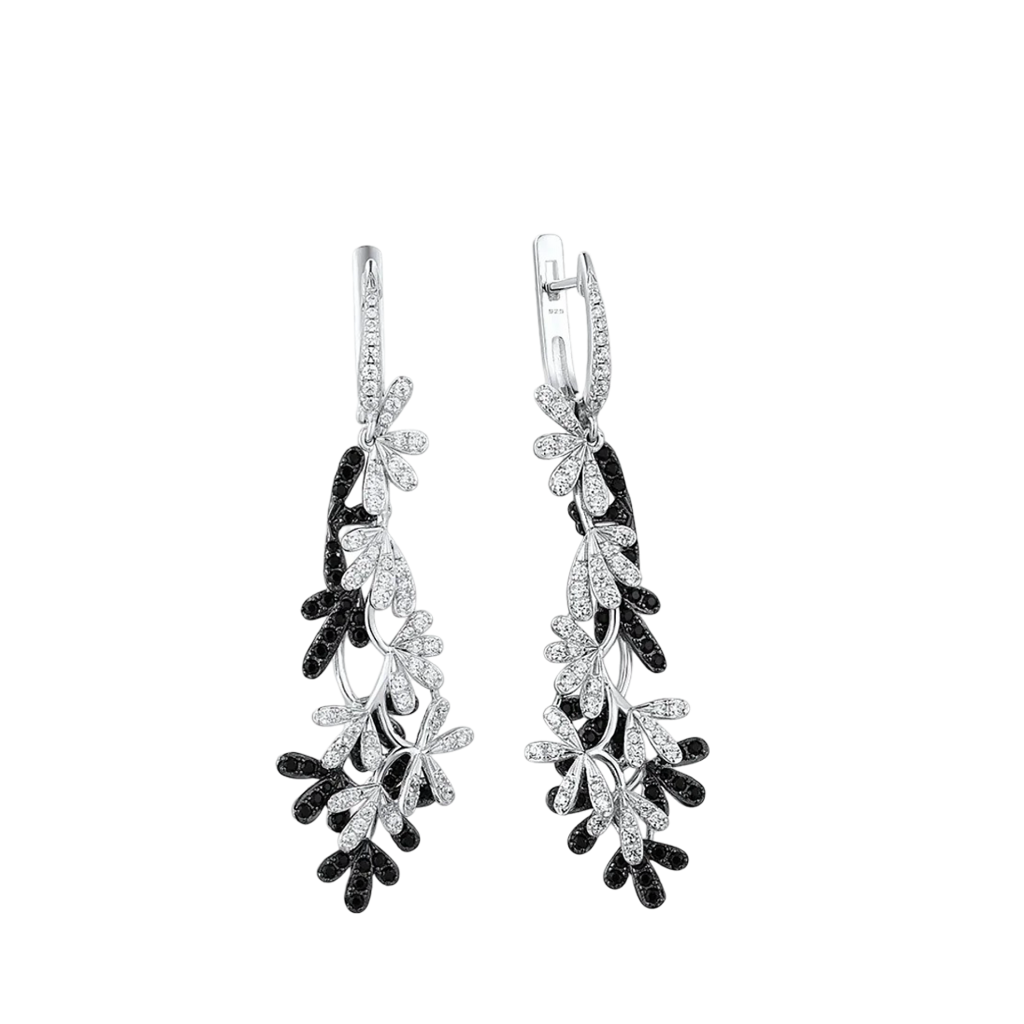 Sidabriniai auskarai su cirkoniais ir špineliais