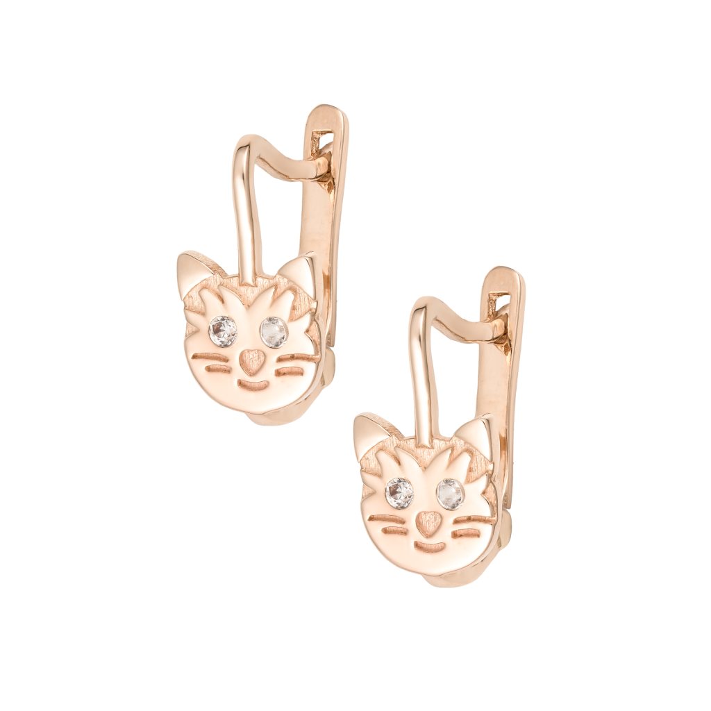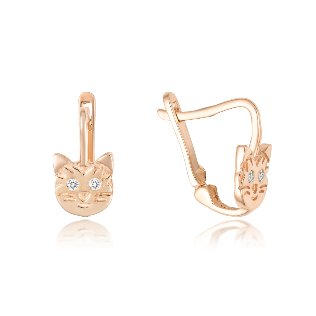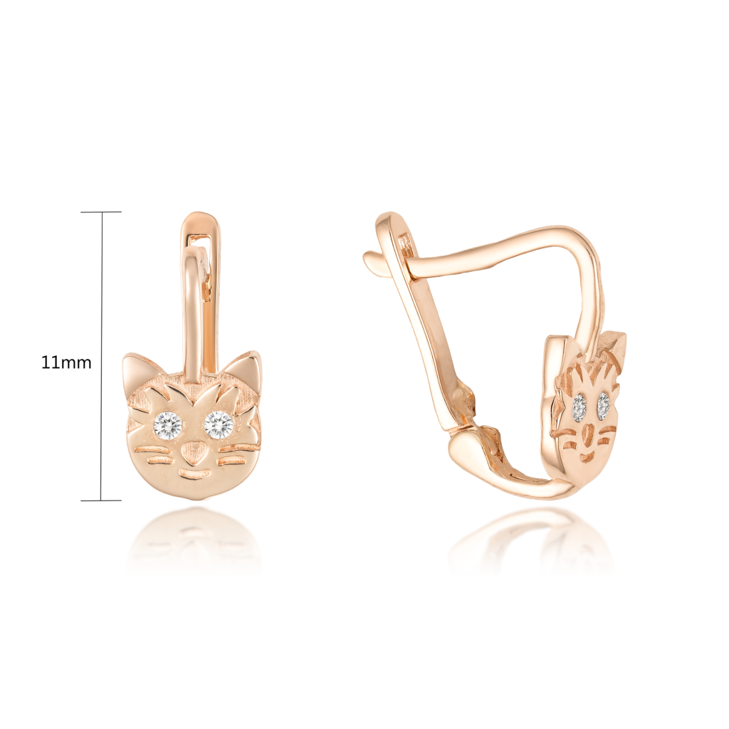 Auksiniai auskarai su cirkoniais "Katinas" - Vaikiški auskarai - Goldinga