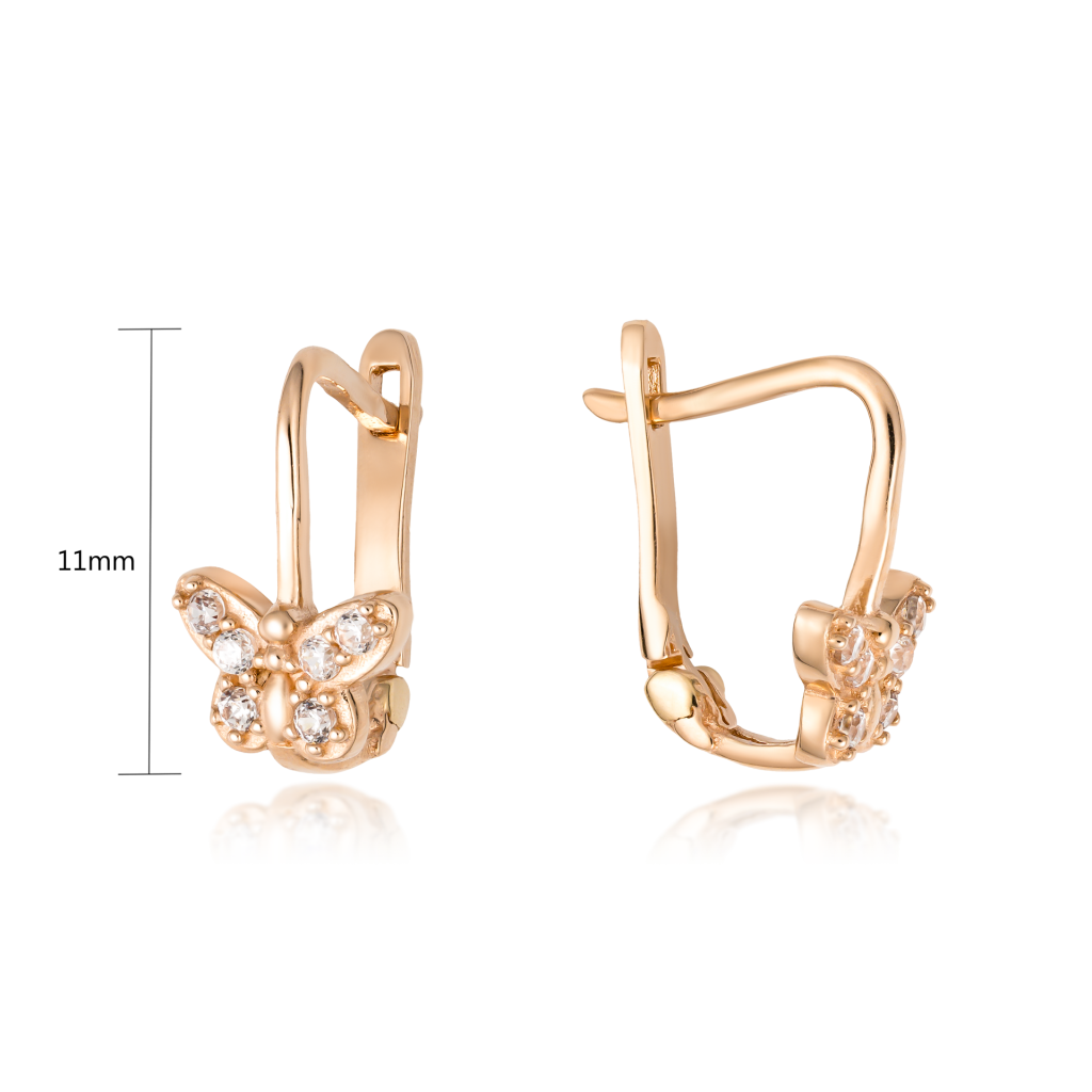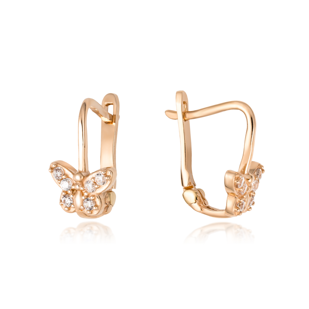Auksiniai auskarai su cirkoniais "Drugelis" - Vaikiški auskarai - Goldinga