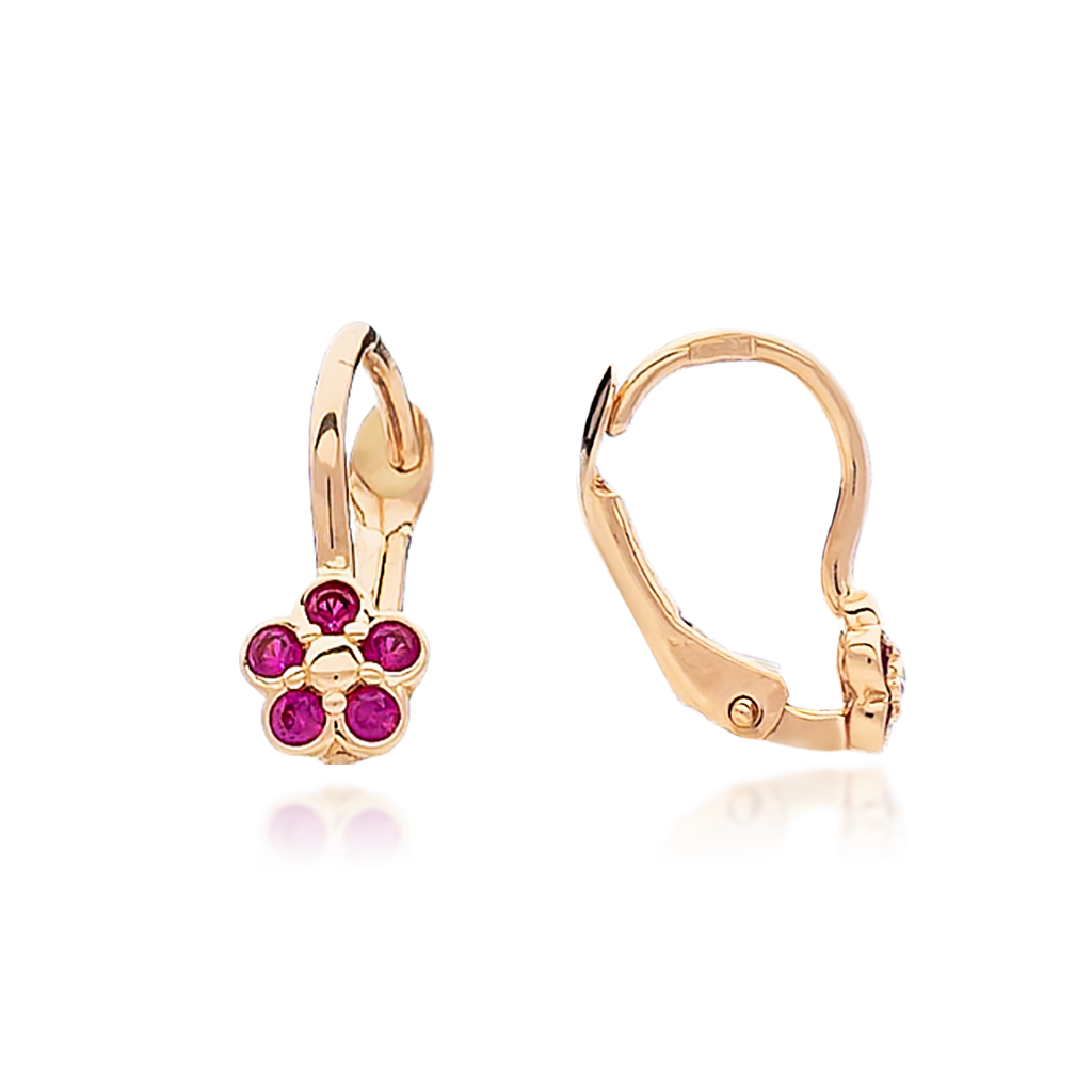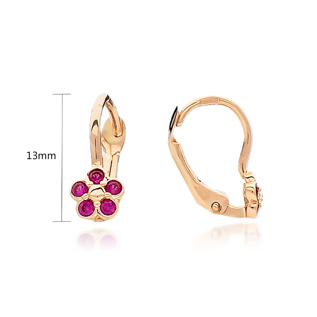 Auksiniai vaikiški auskarai su cirkoniais "Gėlytės"