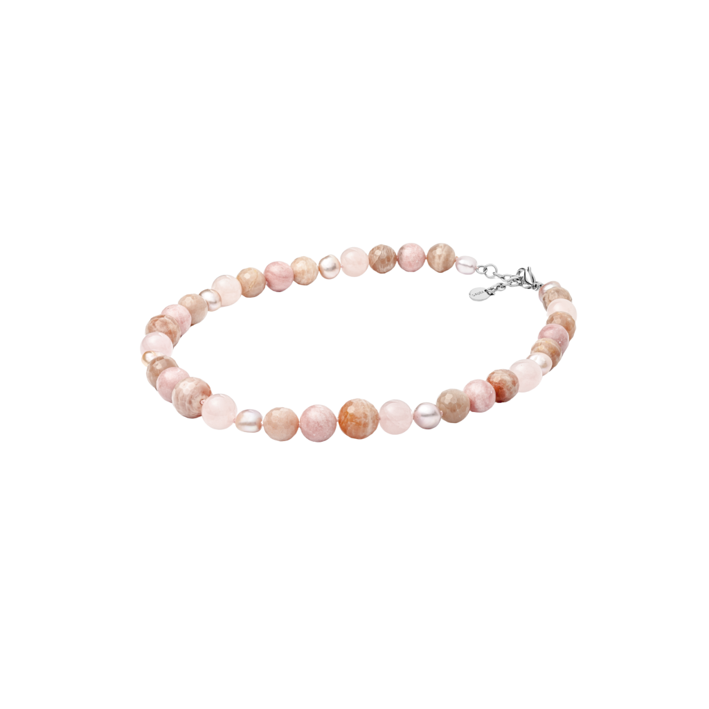 Vėrinys su saulės akmenimis, rožiniu kvarcu ir opalu