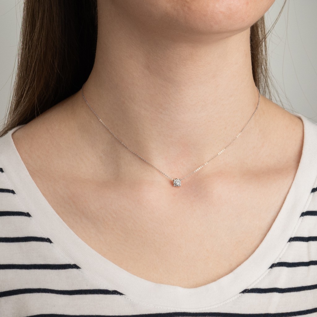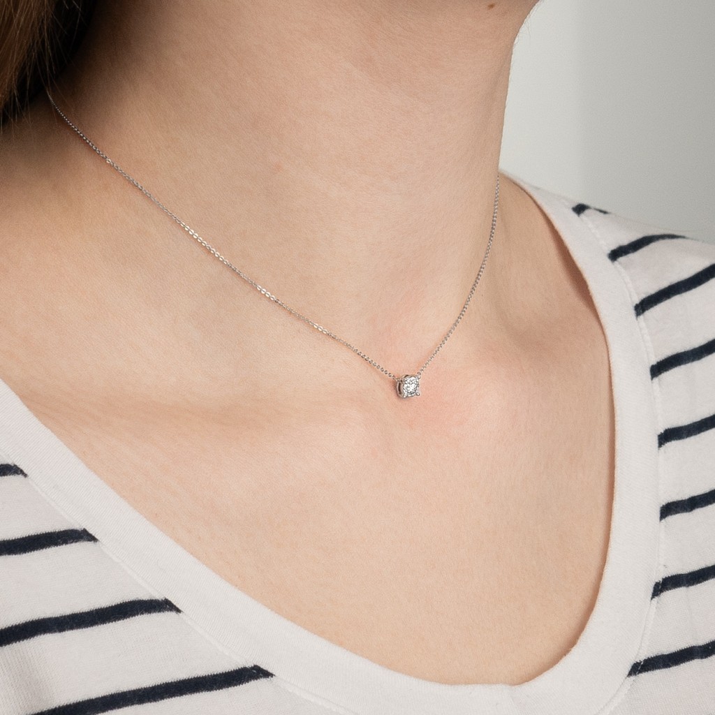 Balto aukso Grandinėlė Su Deimantiniu Pakabuku - Auksinės grandinėlės su pakabukais - Goldinga