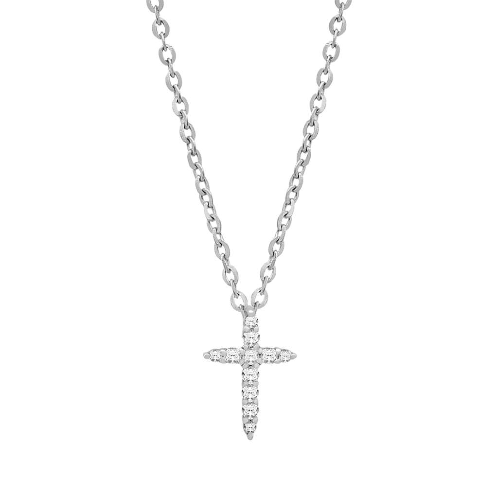 Balto aukso Grandinėlė Su Deimantiniu Pakabuku "Kryželis" - Auksinės grandinėlės su pakabukais - Goldinga