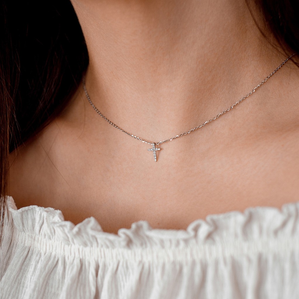 Balto aukso Grandinėlė Su Deimantiniu Pakabuku "Kryželis"