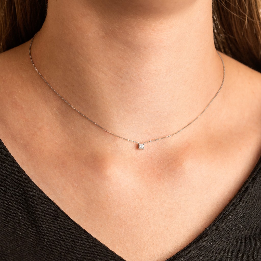 Balto aukso Grandinėlė Su Deimantiniu Pakabuku - Auksinės grandinėlės su pakabukais - Goldinga