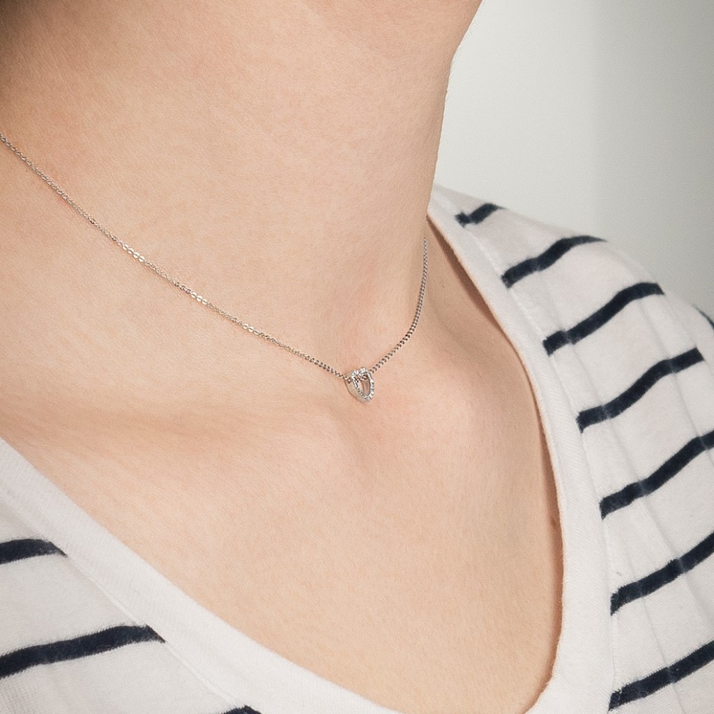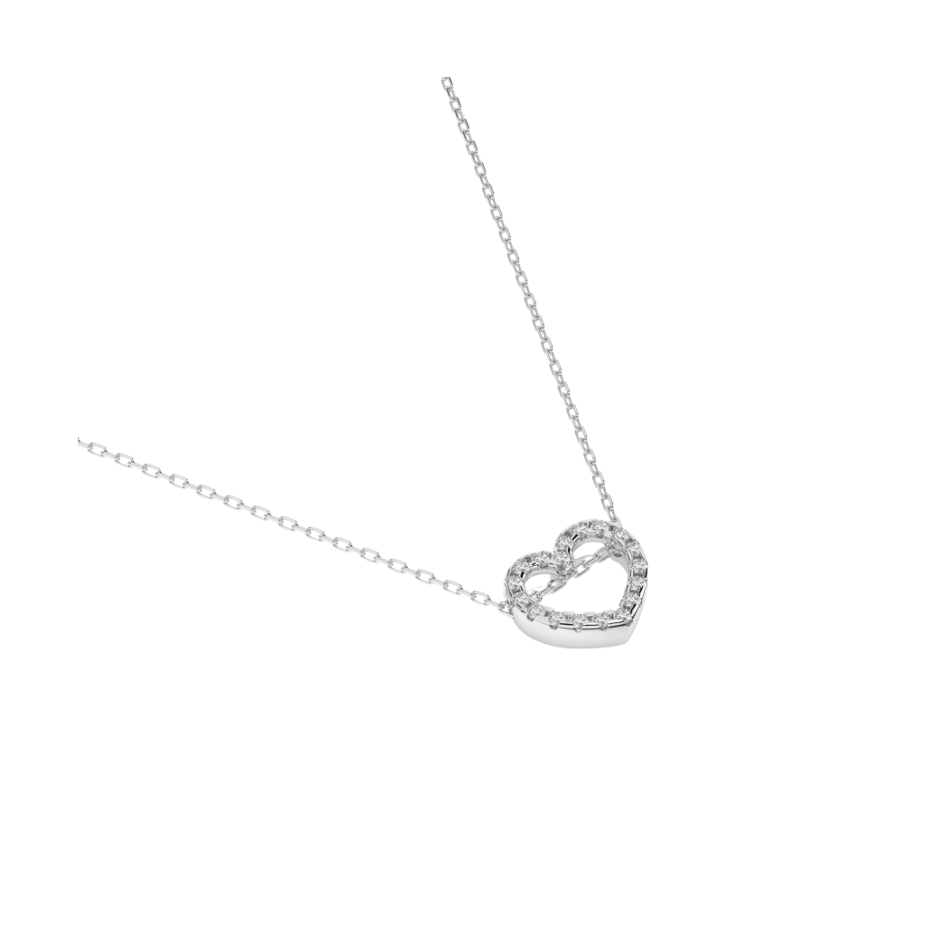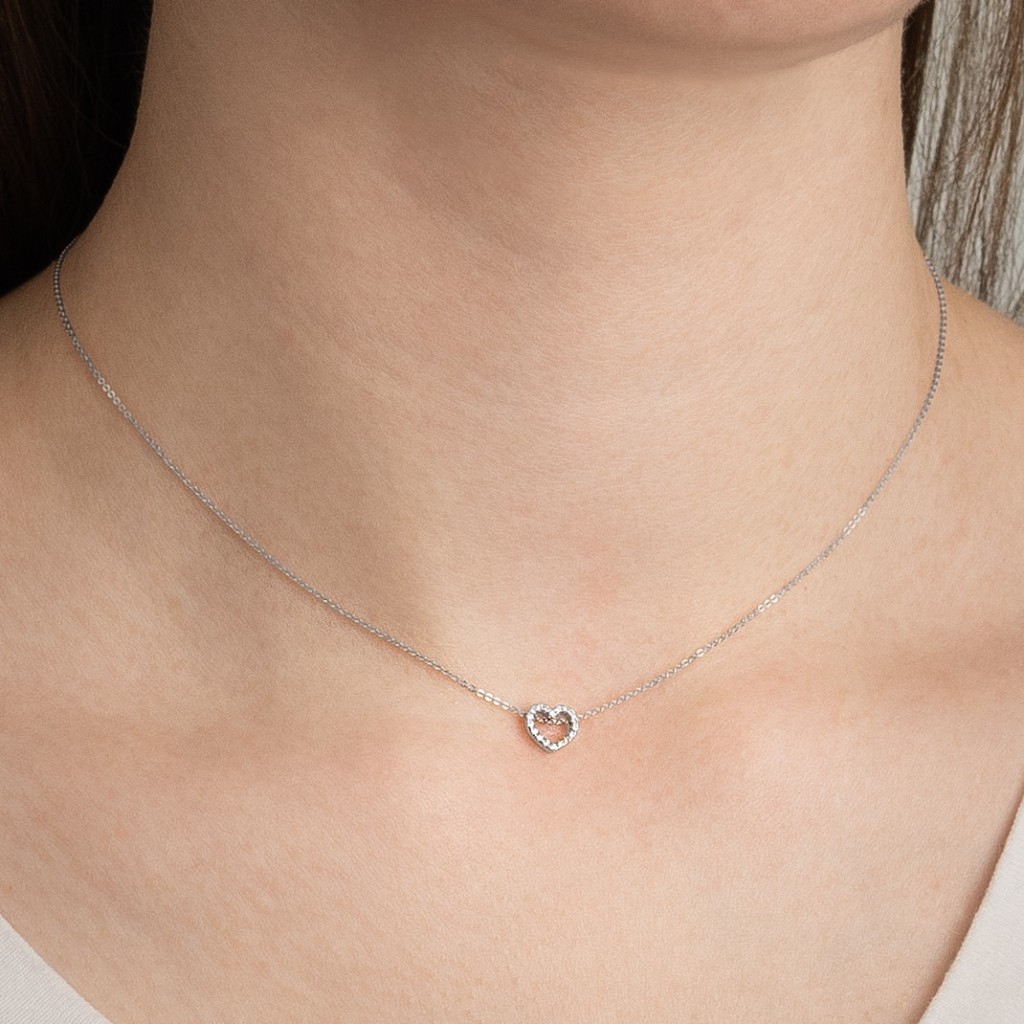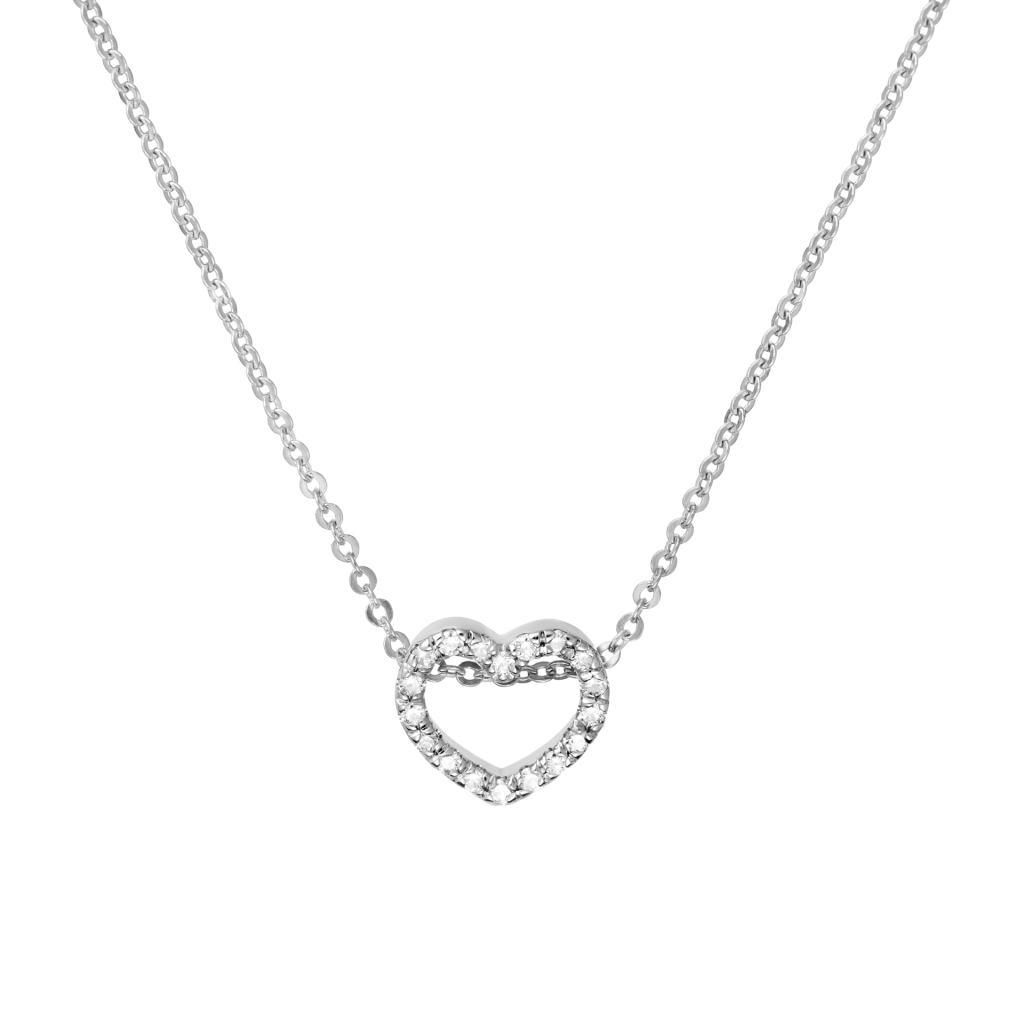 Balto aukso Grandinėlė Su Deimantiniu Pakabuku "Širdelė" - Auksinės grandinėlės su pakabukais - Goldinga